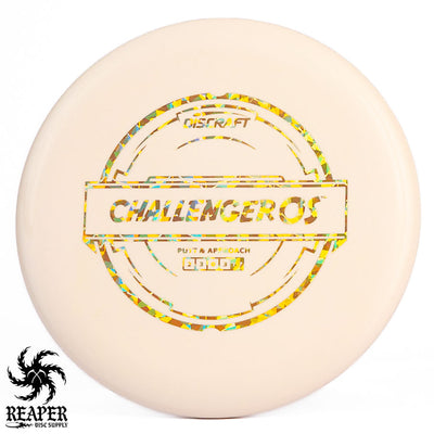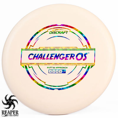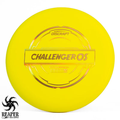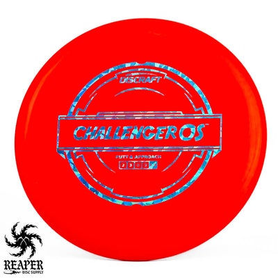 Introducing the Discraft Putter Line Challenger OS, an overstable putter designed for added stability and glide. This flat-topped version of the popular Challenger offers a comfortable grip for medium to larger-sized hands, making it perfect for driving, throwing into headwinds, forehand approaches, and hyzer putts.