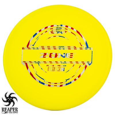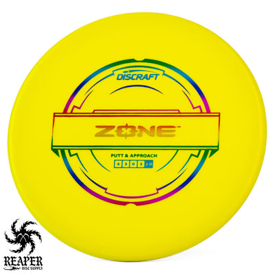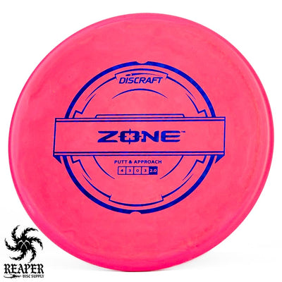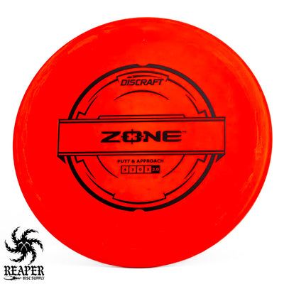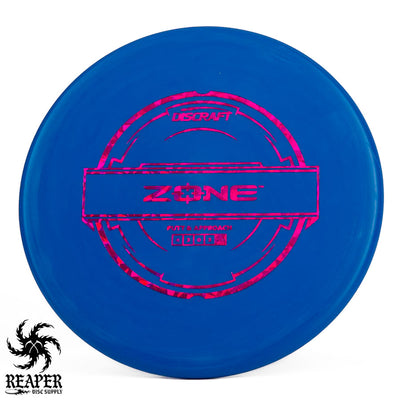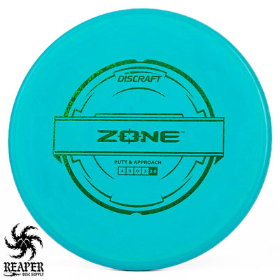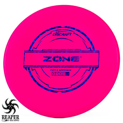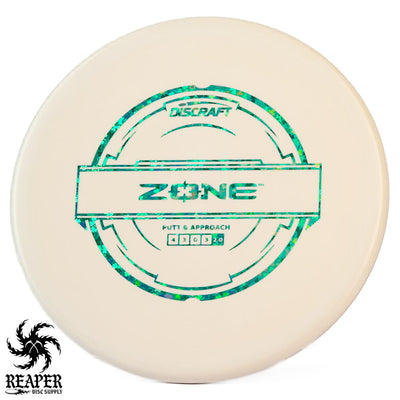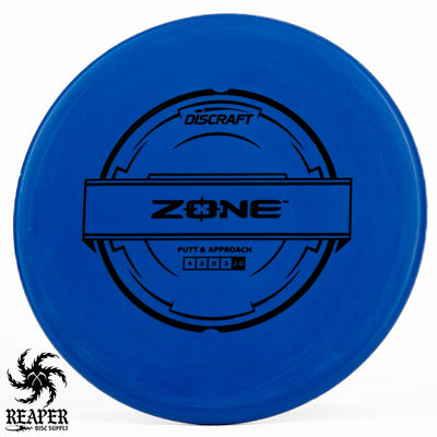 The Discraft Putter Line Zone is an incredibly grippy and overstable approach disc made with Discraft's affordable baseline plastic. While the Putter Line Zone might not have the greatest damage resistance, it certainly makes up for it in the grip and comfortability department. If you prefer approach discs with grippy plastic for those touchy upshots to the basket, say hello to the Discraft Putter Line Zone!