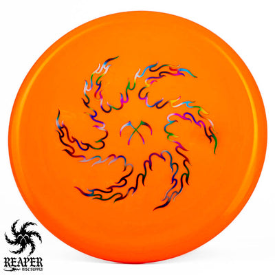 Meet the Innova Star Invader - Reaper Edition. Made with top-tier Star plastic, this disc offers unparalleled grip, durability, and all-weather performance. Designed for straight drives and precise approaches, it's perfect for tunnel shots, forehand upshots and headwind putts, serving players of all skill levels. The Star Invader promises reliable flight, even under power, making it a standout choice for your disc golf bag.