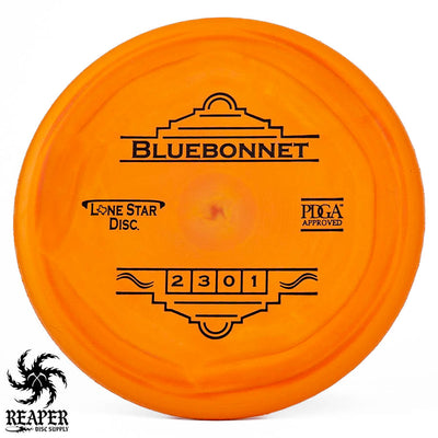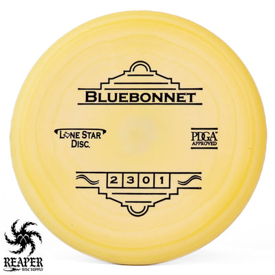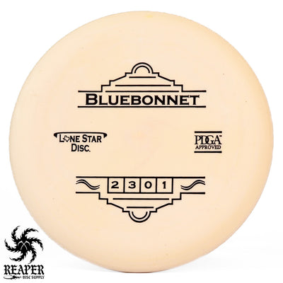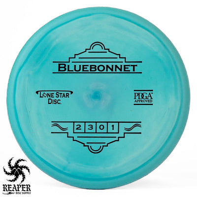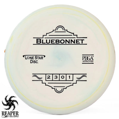 he Lone Star Discs Bluebonnet in Victor plastic is a grippy putter that is great for players of any skill level. With a dead-straight flight path, the Bluebonnet will fly however you want it to before finishing with the slightest amount of fade. If you are looking to spice up your putter inventory then give the Lone Star Bluebonnet a shot!