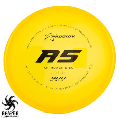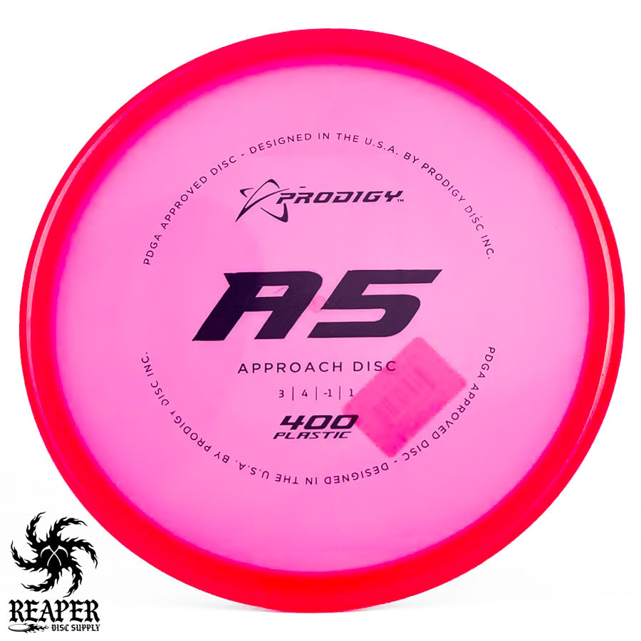 Crafted from Prodigy's premium 400 plastic, the 400 A5 is a disc that combines durability with impeccable grip. This stable approach disc is known for its straight flight and consistent, hard-fading finish. It's a versatile choice that appeals to players of all levels, providing both control and precision on the course.