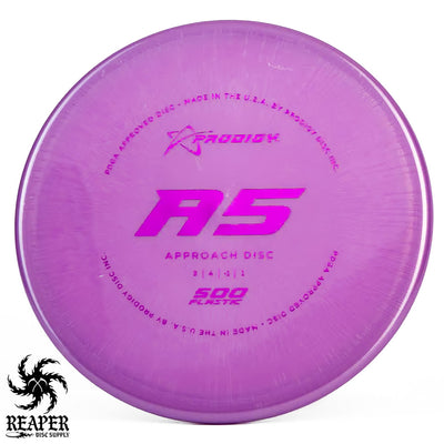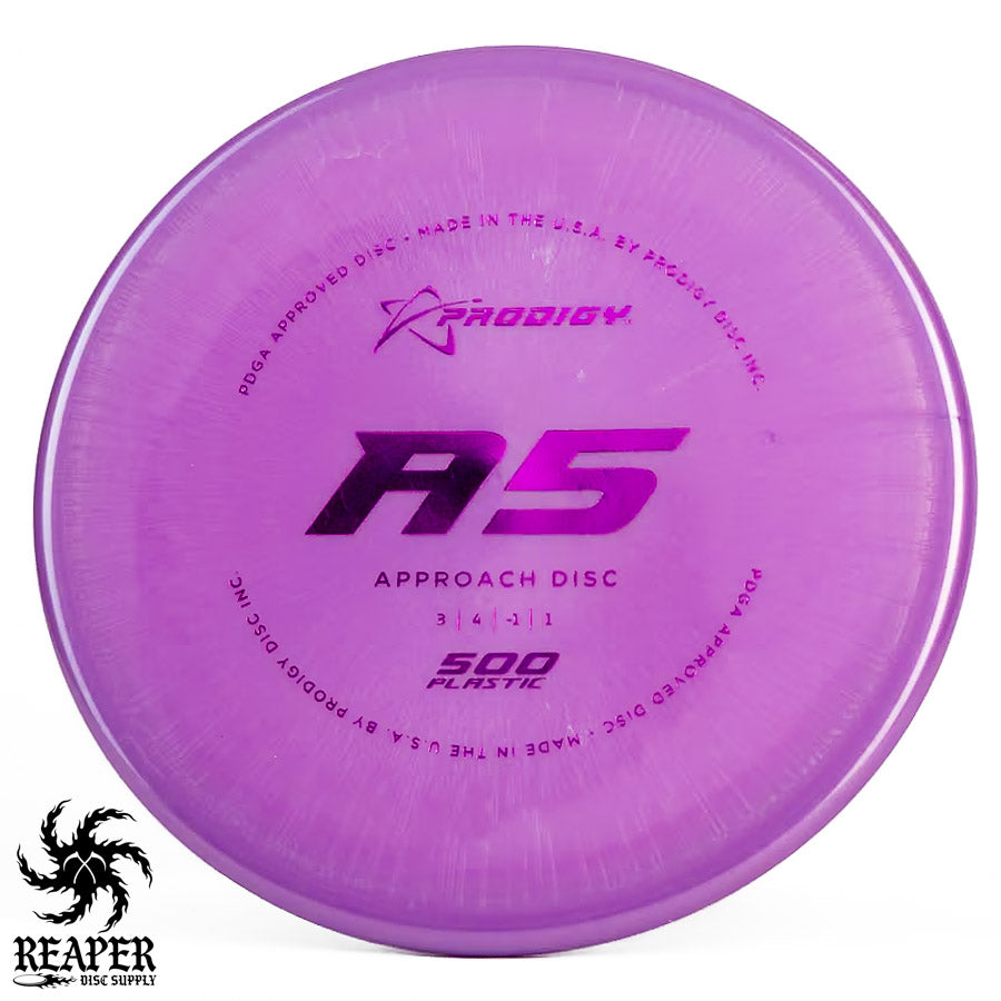 The Prodigy 500 A5 is a stable approach disc, designed for precision and control. Made from Prodigy's 500 plastic, it offers a confident grip and stiffer flight plate. This disc excels at maintaining a straight flight with a reliable overstable finish, great for any skill level.