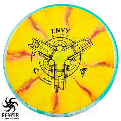The Axiom Cosmic Neutron Envy is a stable to slightly overstable putt & approach disc made with premium swirly plastic.