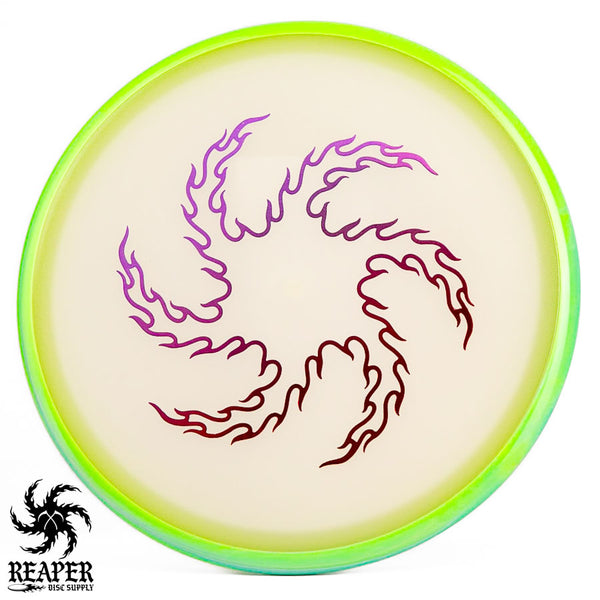 Immerse in the mesmerizing glow of the disc golf world with the Axiom Eclipse Glow Hex, Reaper Edition. Uniquely designed with our signature flame vortex logo stamp, this limited Reaper Edition is just what you need for your next night round.