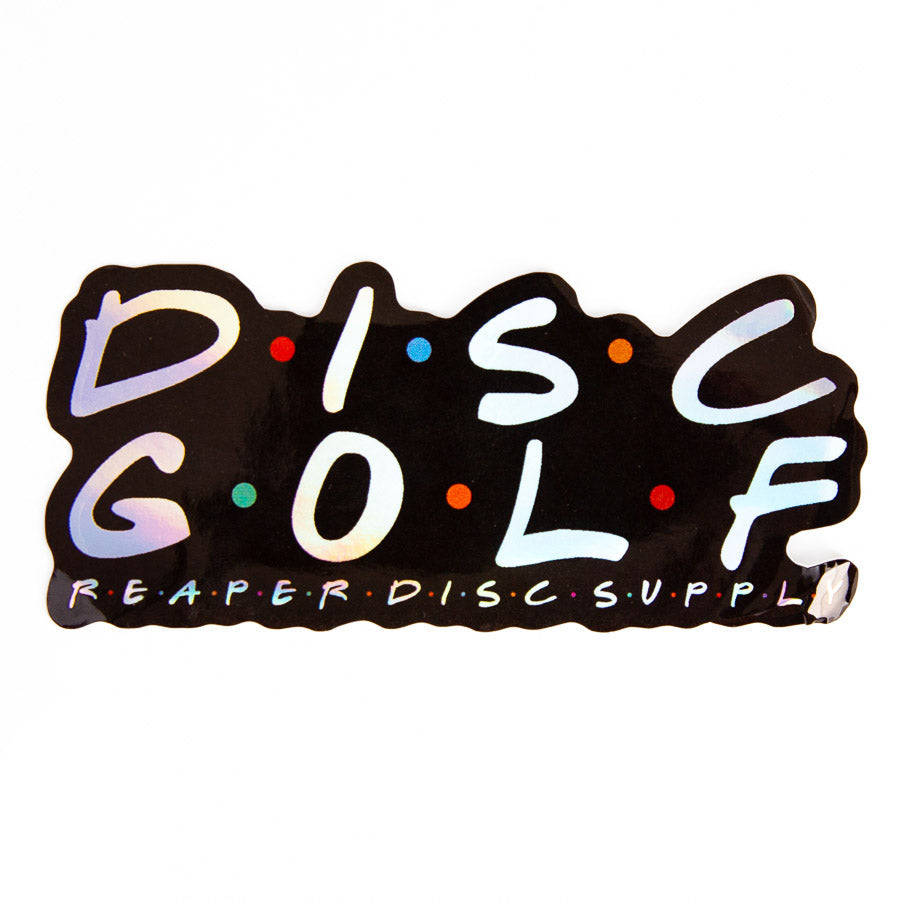 A fun parody holographic disc golf sticker that looks great on whatever you stick it to. Approximately 4" long and made with permanent adhering all-weather aluminum.