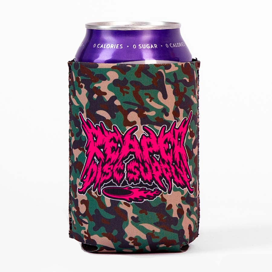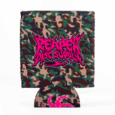 These custom designed and printed drink koozies feature our 'Death Metal' design and traditional camouflage background. Fits a basic sized 12 oz drink can, or any other container that is about the same diameter. Keep your drink cold this Summer with these dope custom koozies.