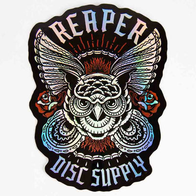 Holographic stickers with our hand-drawn 'Owl' design. About 4 inches tall and made with permanent adhering all-weather aluminum.