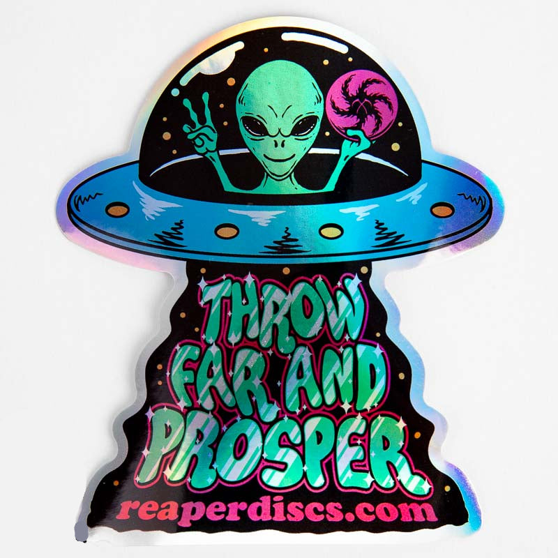 These gorgeously radiant holographic Throw Far And Prosper stickers are fabulous for your vehicle, rollerblades, pet Meditteranean Gecko's terrarium, or whatever tf else you want. Or you could save your money and give it to a charity instead of buying this sticker (because you don't really need it, do you?)