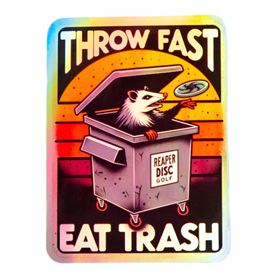 If you are into dumpster-diving rodents hucking disc golf discs, then you are going to love our Throw Fast, Eat Trash sticker. Premium grade UV holographic stickers.