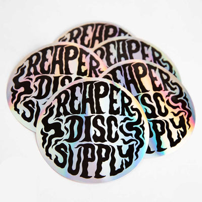 A holographic sticker that features our name with a wavy, hand-drawn text. These are about 4" long and made with permanent adhering all-weather aluminum. Only comes with one sticker.