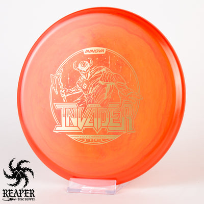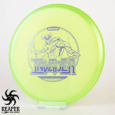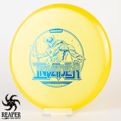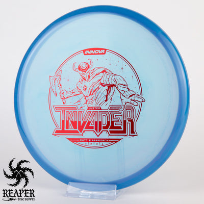 The Innova Invader is a stable beaded putt & approach disc with minimal glide and average stability. Many players use the Invader for approach shots since there is hardly any skip - the disc sits down extremely fast. An excellent throwing putter for short drives, and a great putting putter in windy conditions. Great for all skill levels!