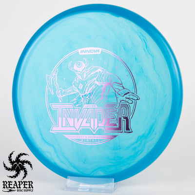 If you are looking for a gummy beaded putt and approach disc with an awesome stamp - look no further than the Innova Champion Luster Invader. Premium plastic, gorgeous colors.
