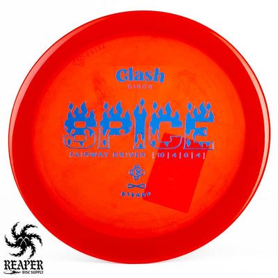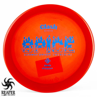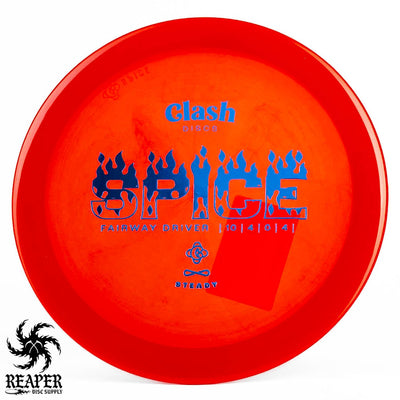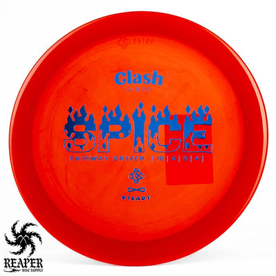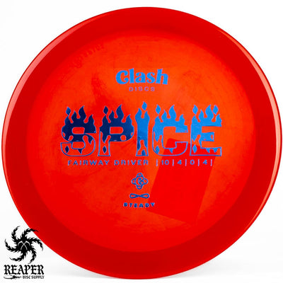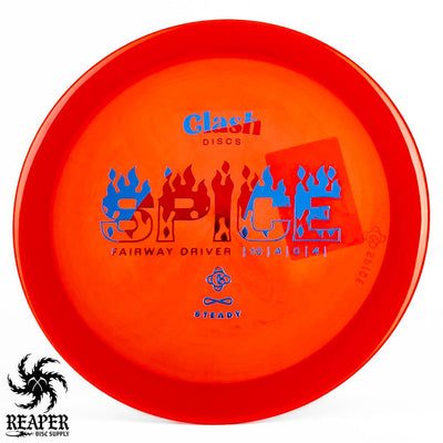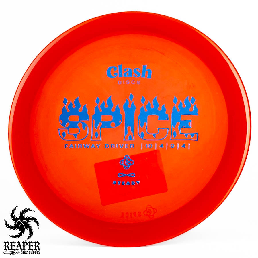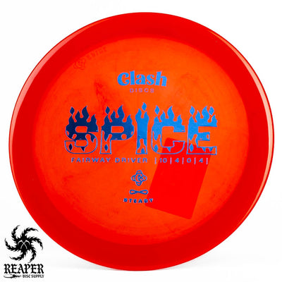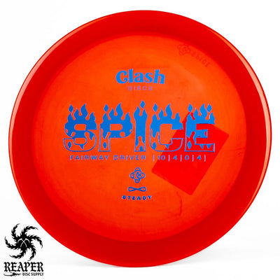 Introducing the Clash Discs Steady Spice, your new overstable driver made from highly durable Steady plastic. Designed for intermediate to advanced players, the Spice excels in torque resistance and robust fade.