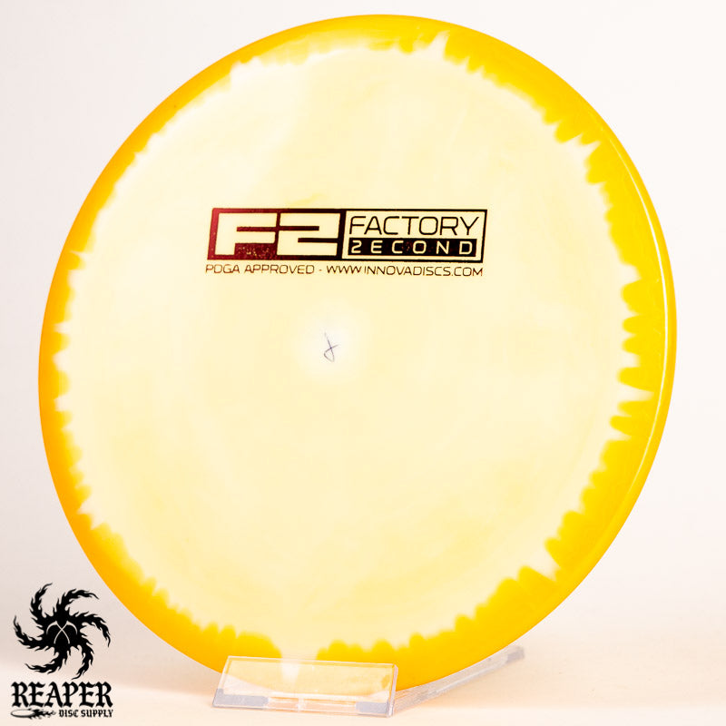 F2 Halo Lions may have minor cosmetic flaws; some have ink spots or miscolorations while others have small divots on the rim/top of the disc. This is how they come from Innova's factory and it's what makes them factory second discs.