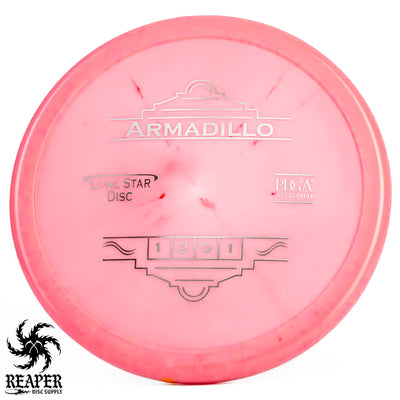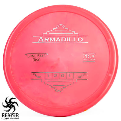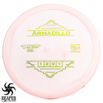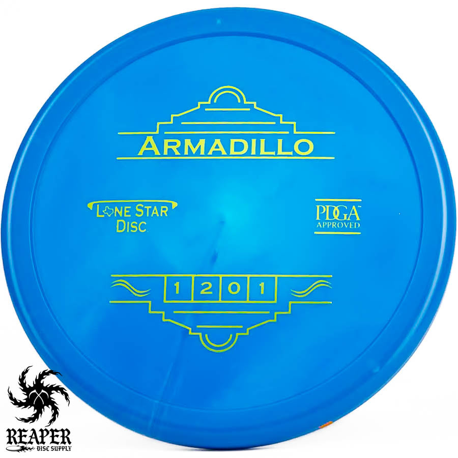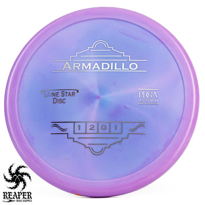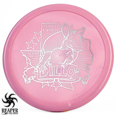 The Lone Star Discs Alpha Armadillo, molded in durable Alpha plastic, is your steadfast approach disc with a reliable straight flight and gentle fade. Its firm and long-lasting Alpha plastic offers excellent grip, similar to Discraft's ESP, ensuring consistent performance. Perfect for precision upshots, the Alpha Armadillo maintains accuracy and control, making it an essential tool for navigating the greens.