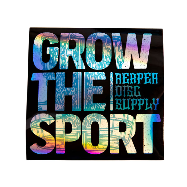 These holographic Grow The Sport disc golf stickers are made with the toughest PVC material that is great for any surface. They are waterproof, weatherproof, and will help repel that one guy who is always blaring his music way too loud on his wireless Bluetooth speaker every time he's at the disc golf course. No one wants to listen to Nickelback with you Chad!