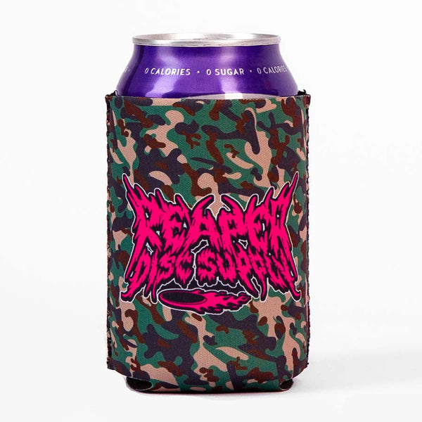 These custom designed and printed drink koozies feature our 'Death Metal' design and traditional camouflage background. Fits a basic sized 12 oz drink can, or any other container that is about the same diameter. Keep your drink cold this Summer with these dope custom koozies.