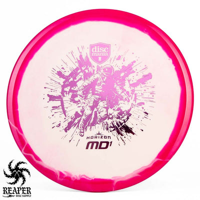 Its comfortable flat profile and beadless rim, combined with magnificent glide, make it the go-to choice for straight approach shots, anhyzers, hyzers, and short drives. Made from the eye-popping and grippy Horizon S-Line plastic, the MD1 is a must-have for players of all skill levels.