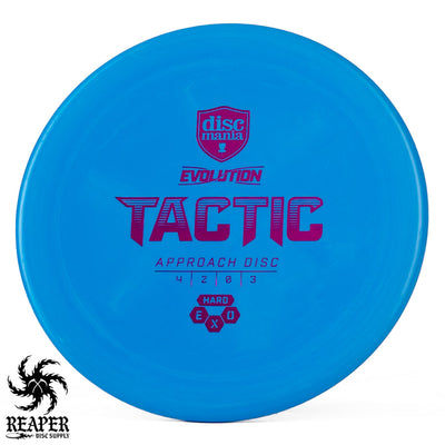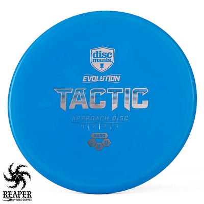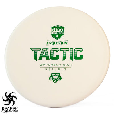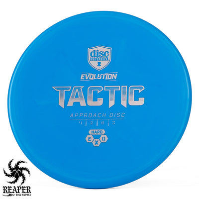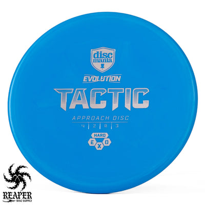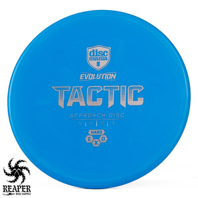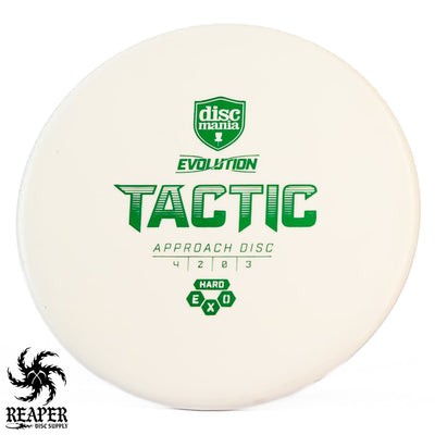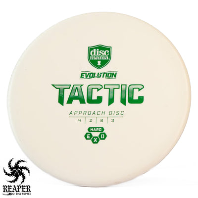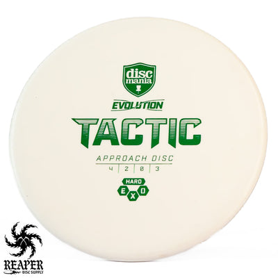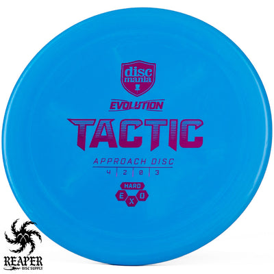 The Discmania Hard Exo Tactic is an overstable approach disc with low glide and grippy hard plastic. This plastic is extremely grippy, and the stiffness will help hold its stability longer before breaking in.