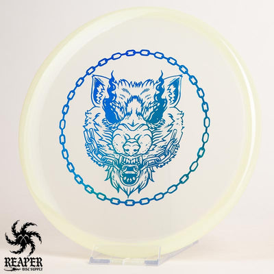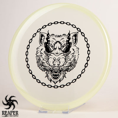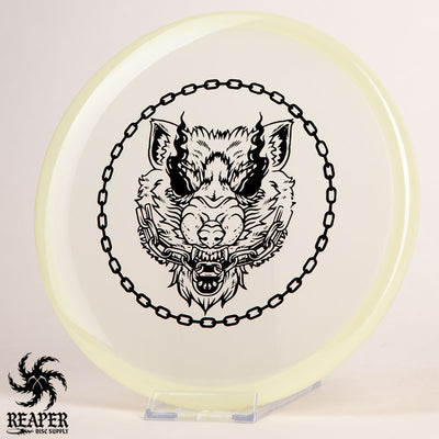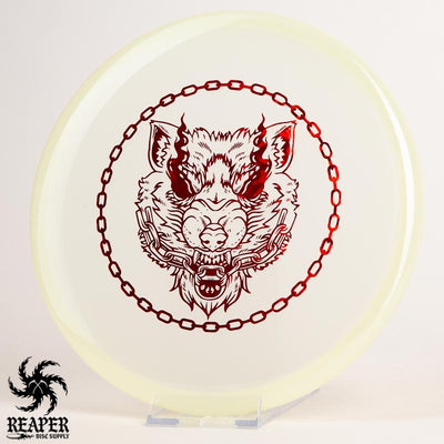 These custom-stamped Reaper Discmania Active Premium Glow Shoguns feature our 'Reaper Wolf' design in a variety of foils. This disc is a deep-dish overstable disc golf putter that is excellent for glow rounds. This straight-flying putt & approach disc with a small bead can handle it all: speed off the tee, control on your upshots, and chain-smashing putts.