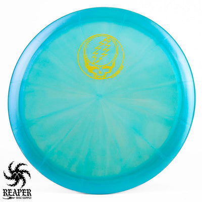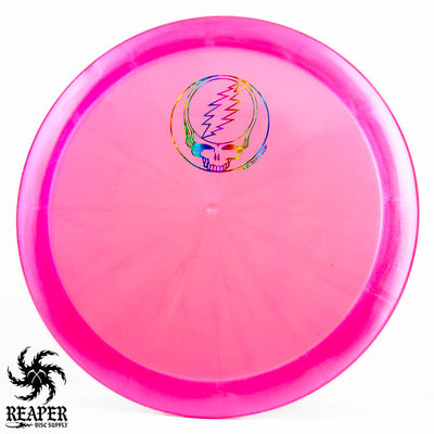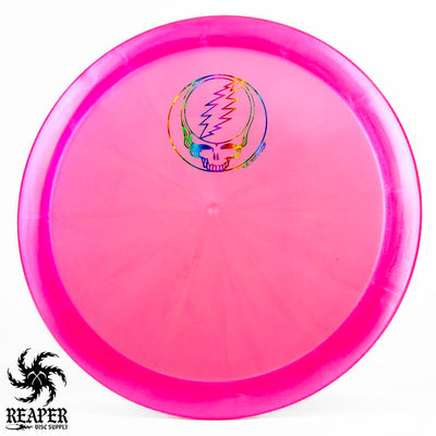 Experience the limited edition Discmania Grateful Dead Chroma Essence, a fusion of style and performance. Crafted with durable Chroma plastic, this disc delivers accuracy and confident throws. Perfect for beginners and pros, it excels in distance drives, controlled throws, tailwinds, and impressive rollers. Embrace the Grateful Dead essence on the course with this gorgeous driver.