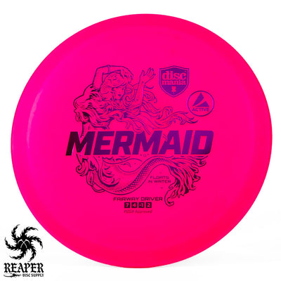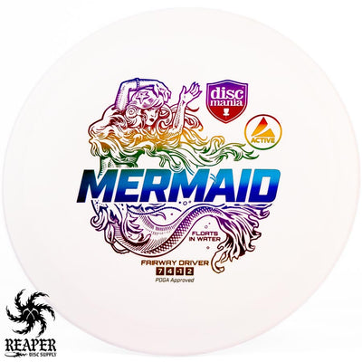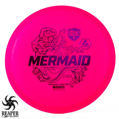The Discmania Mermaid is a lightweight fairway driver that floats on water and comes in grippy, affordable Active plastic. Active-line plastic is Discmania's baseline plastic that is incredibly easy to grip in any weather conditions (even if it's wet.)