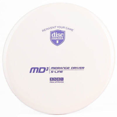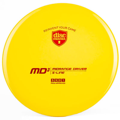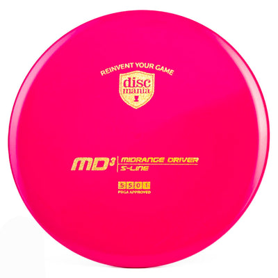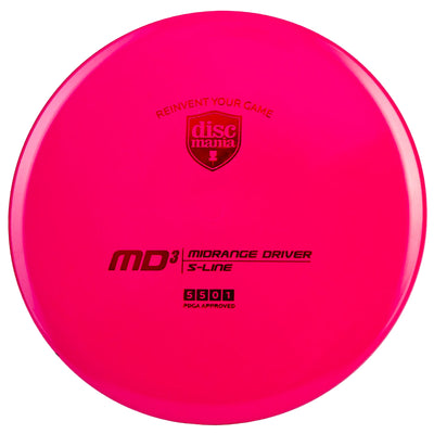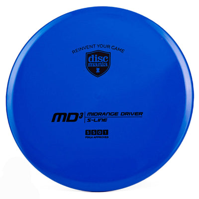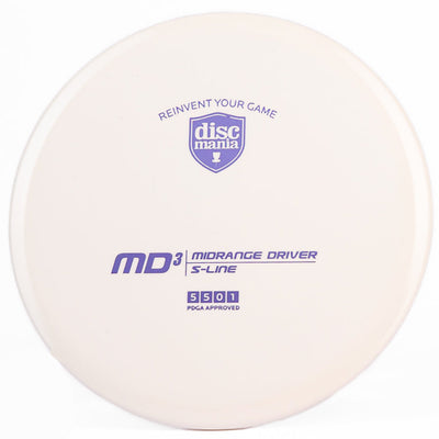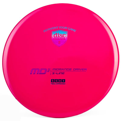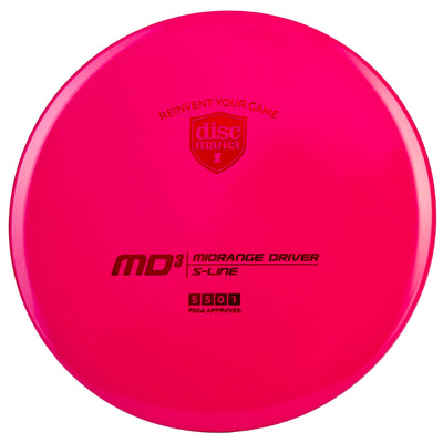 The Discmania S-Line MD3: a versatile midrange disc trusted by pros. Glide and accuracy like a driver, with a gentle fade. S-Line plastic offers durability, tacky grip, and precise shots. Elevate your game with this beginner-friendly midrange - the Discmania S-Line MD3!