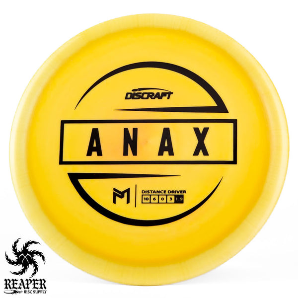 The Discraft Anax is 10 speed distance driver with a ton of glide and a forward pushing fade at the end. In our experience, the Anax is like a slightly faster Thunderbird with a little more glide. With enough speed the Anax is a great anhyzer turnover disc, and beginners will find this disc very forehand friendly. Add an Anax to your bag if you're looking for a dependable far gliding workhorse of a distance driver!