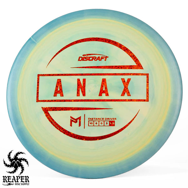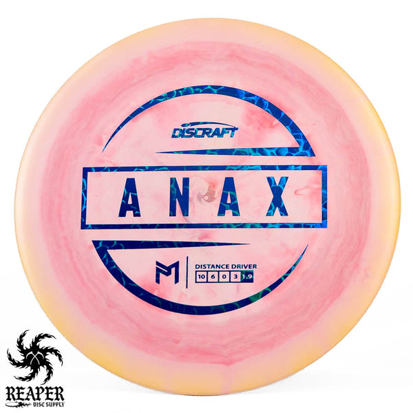 Discraft's ESP Anax is an overstable distance driver with tons of glide. The Anax comes in gorgeous swirly premium ESP plastic with all the foil colors you love.