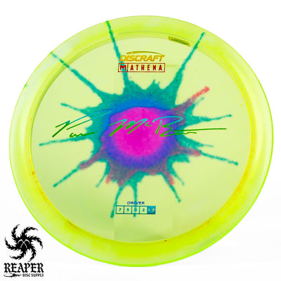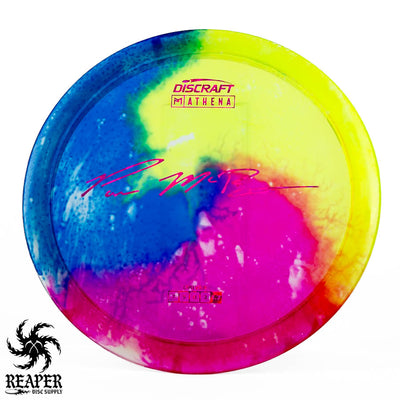 The Discraft Athena in Z Fly Dye plastic, part of Paul McBeth's signature line, offers exceptional control and precision. Perfect for accurate fairway drives and placement shots, its durable and unique Z Fly Dye plastic provides a reliable grip. Suitable for both beginners and advanced players, this disc ensures you land exactly where you need to on the course.