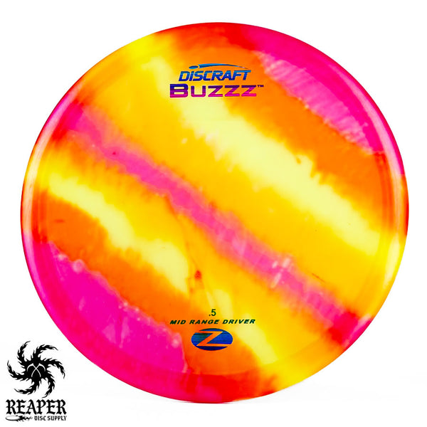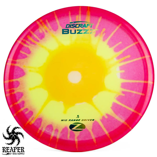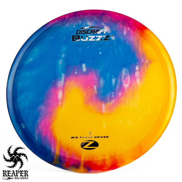 The Discraft Z Line Fly Dye Buzzz is a visually stunning midrange disc, offering a stable flight with a touch of overstability in a durable and eye-catching package. The premium Z Line plastic ensures long-lasting performance and resistance to wear, while the Fly Dye process adds a unique, vibrant flair to each disc, making it a standout on the course for both its beauty and reliability.