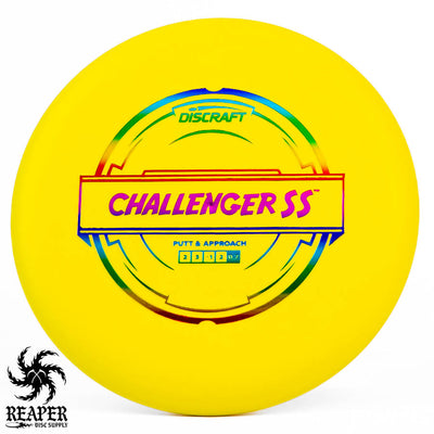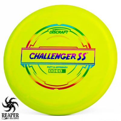 Get ready to meet your new secret weapon on the course, the Discraft Putter Line Challenger SS. Made from Putter Blend plastic, this disc serves up reliability, grip, and an accessible price point.