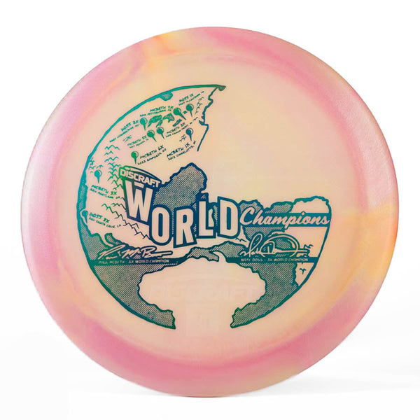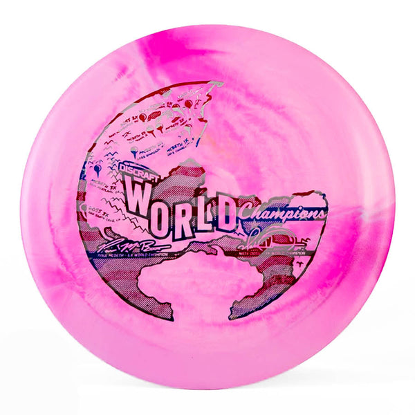The Discraft Force in ESP Swirl plastic is a limited 'Worlds' edition, offering elite performance and collector's appeal. Designed for advanced players, this overstable distance driver excels in delivering long, controlled drives, even in windy conditions. With its unique swirl patterns and durable plastic, this disc is as visually striking as it is reliable on the course.