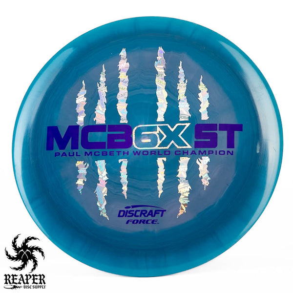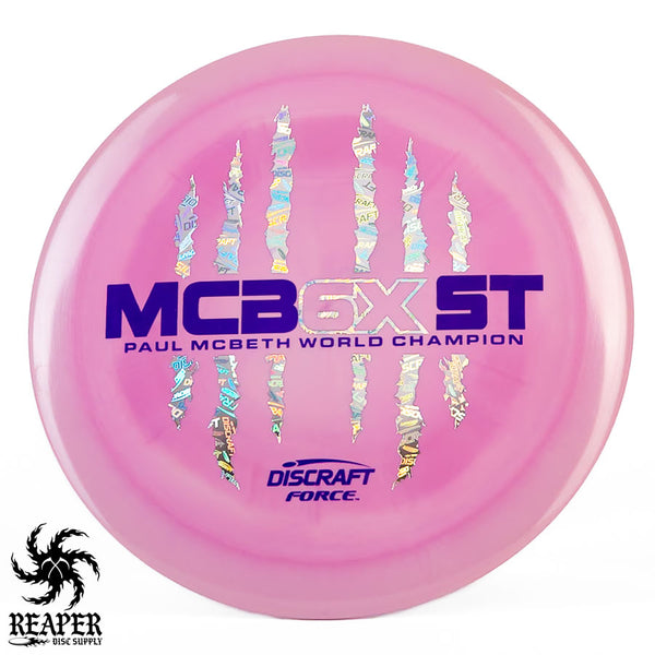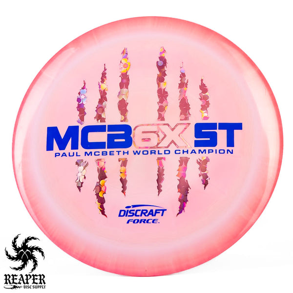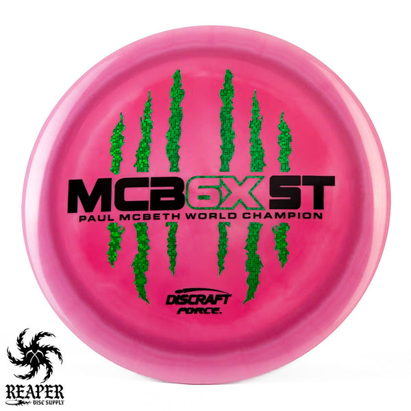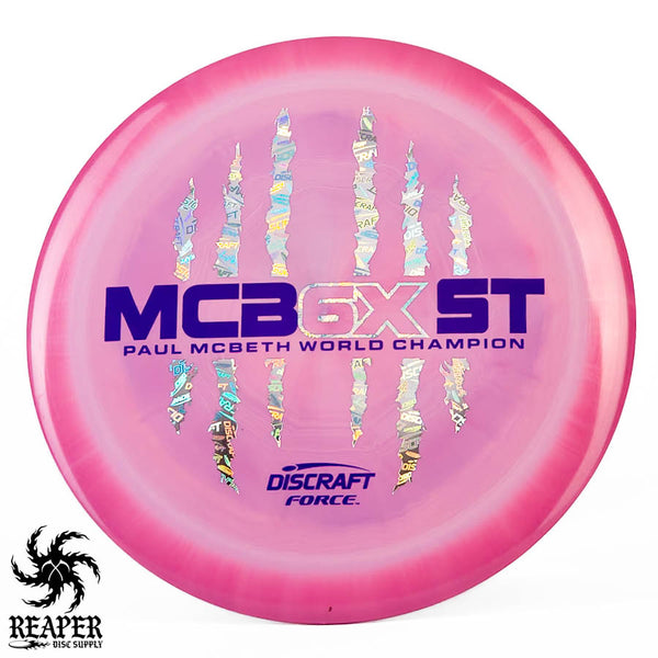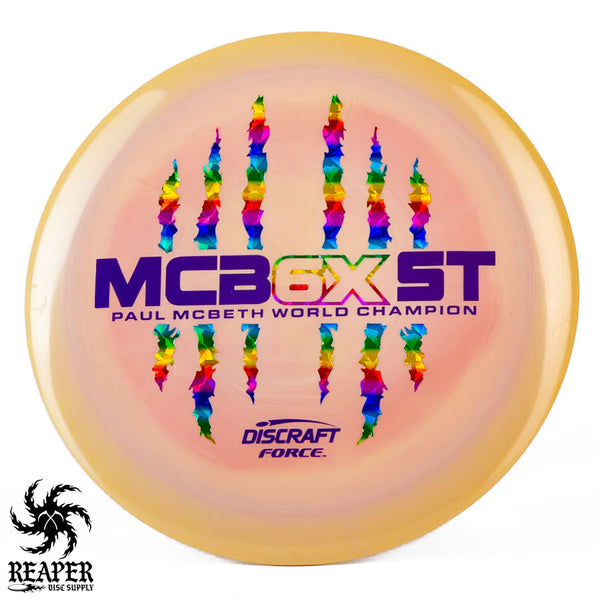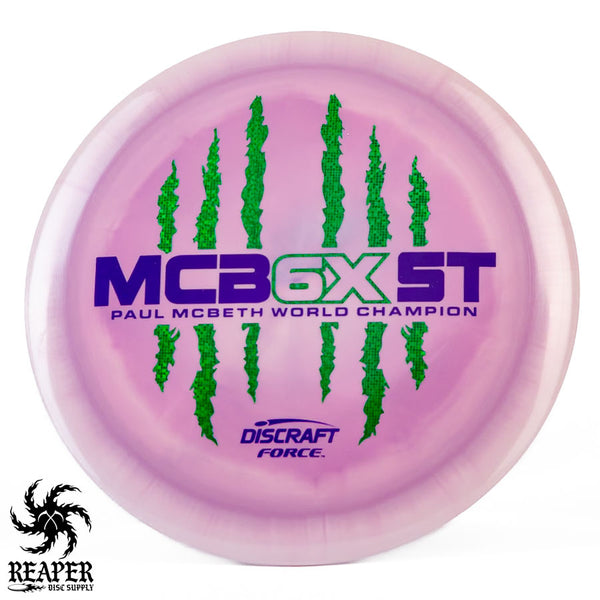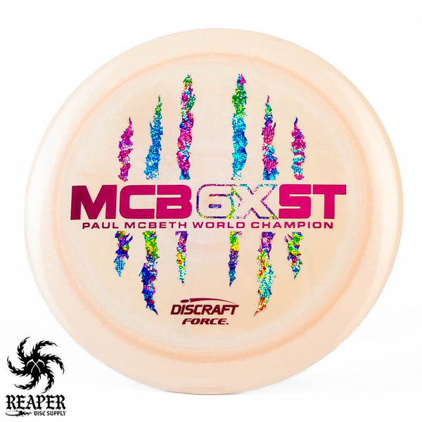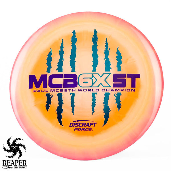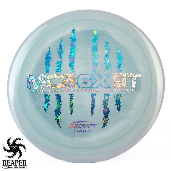 The Paul McBeth 6X McBeast ESP Force has a two-color stamp with unique foil combinations and comes in sweet swirly ESP colors. Limit 1.