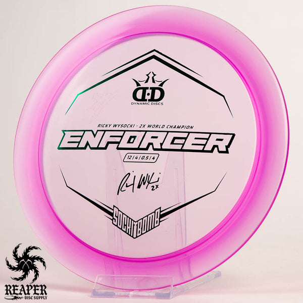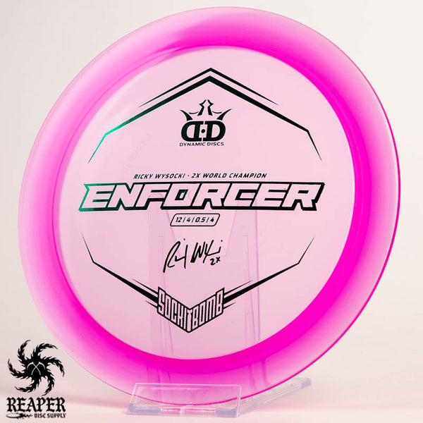 The Dynamic Discs Lucid Enforcer is Ricky Wysocki's signature distance driver made with premium & stable plastic.