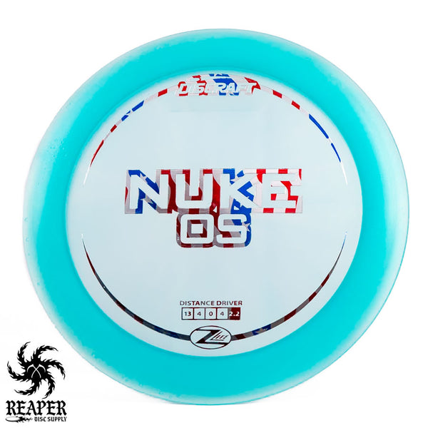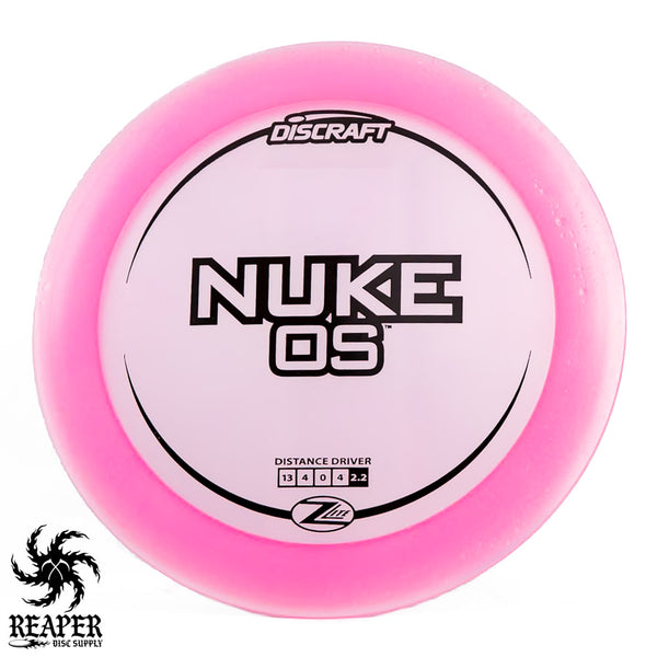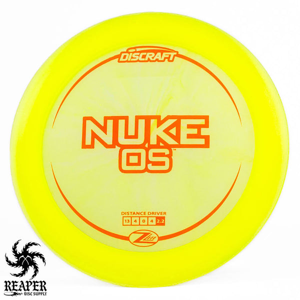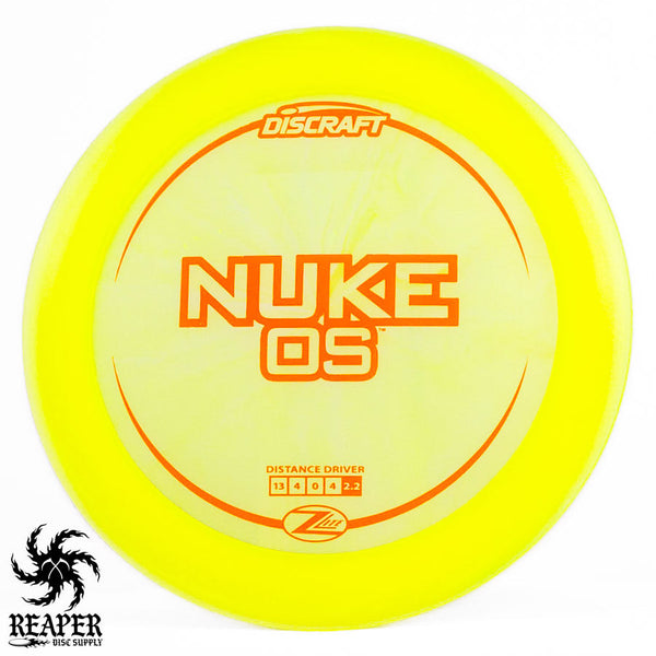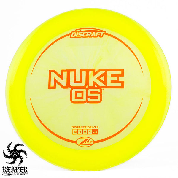 Introducing the Discraft Z Lite Nuke OS. Lightweight, durable, and great for windy conditions, it's crafted for players who need a reliable drive. It has a thick 2.5cm rim and a consistent, sharp overstable fade. Its innovative Z Lite construction ensures longevity and performance, making it suitable for those aiming for greater distance. Pick up a Z Like Nuke OS in weights as low as 140g!