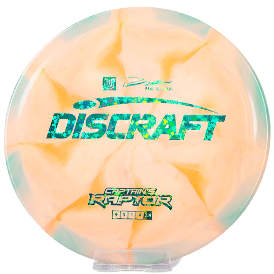 The Discraft Captain's Raptor is Paul Ulibarri's signature driver, is made with premium swirly ESP plastic, and is extremely overstable.