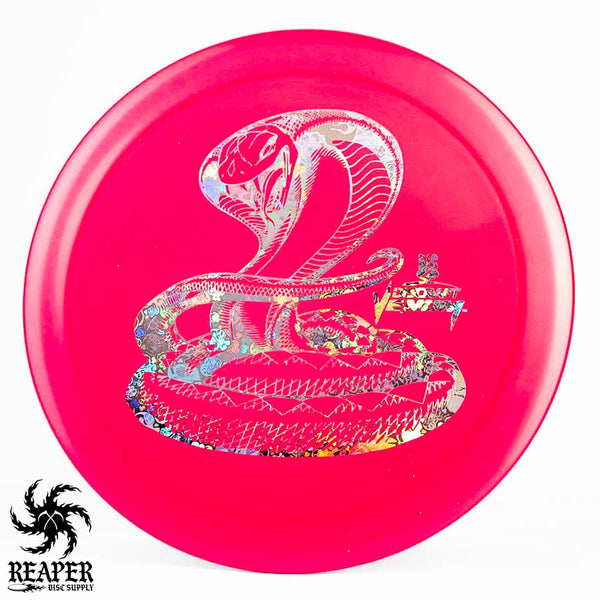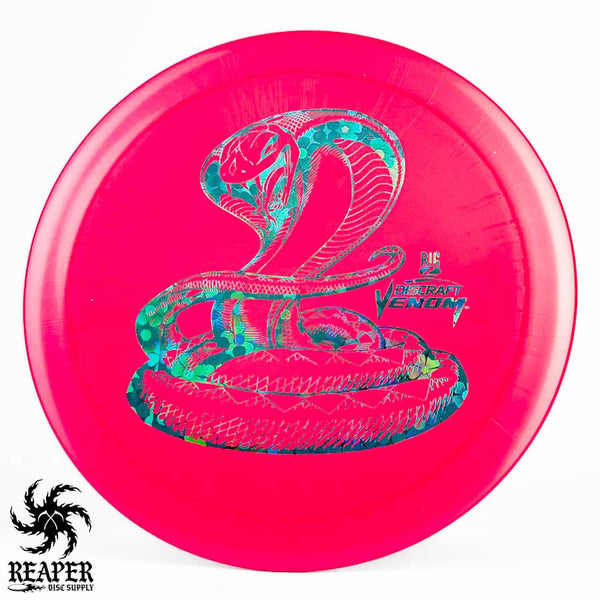 This overstable driver has a dope oversized cobra stamp, and a pearly sheen that looks rad in the sun. Don't let its overstable flight path intimidate you; advanced players will love the predictable flight of the Venom! Whether forehand or backhand, the Discraft Big Z Venom promises you a reliable overstable drive!