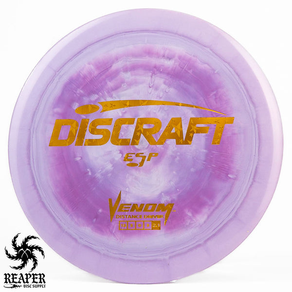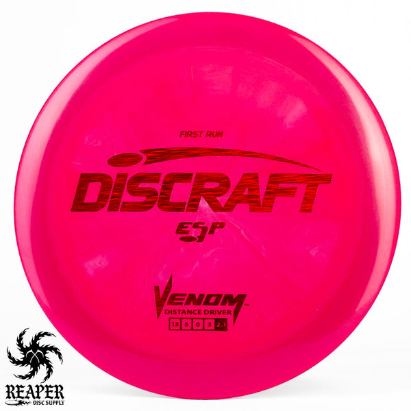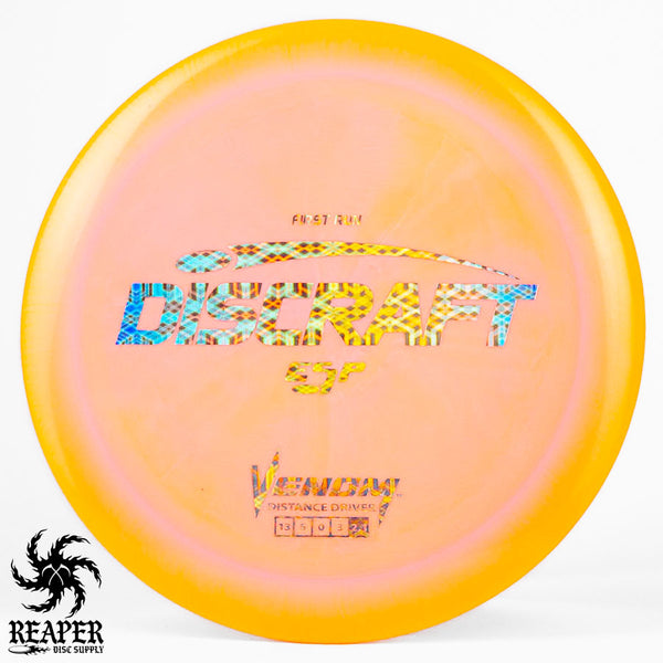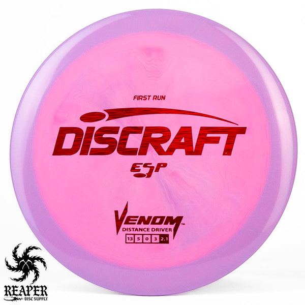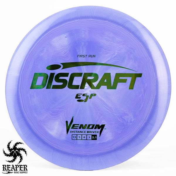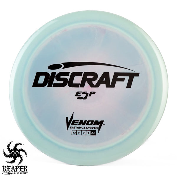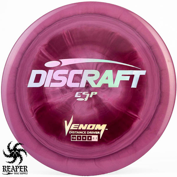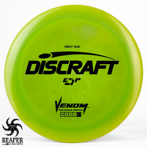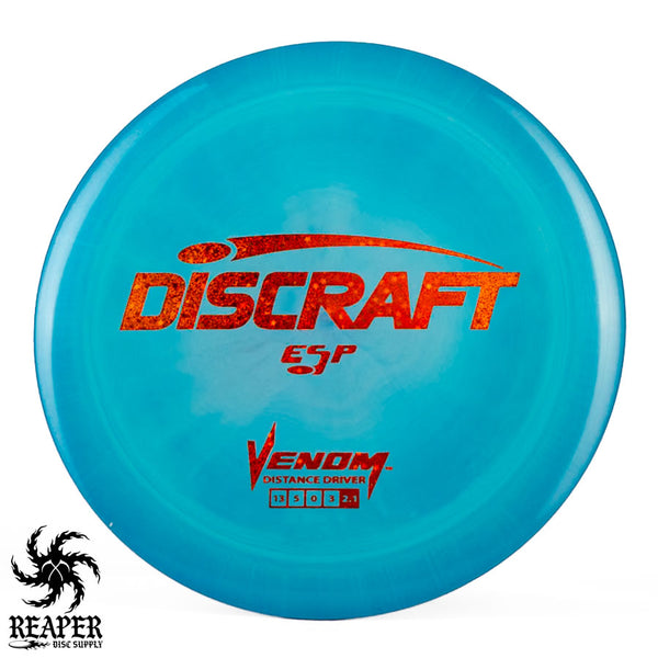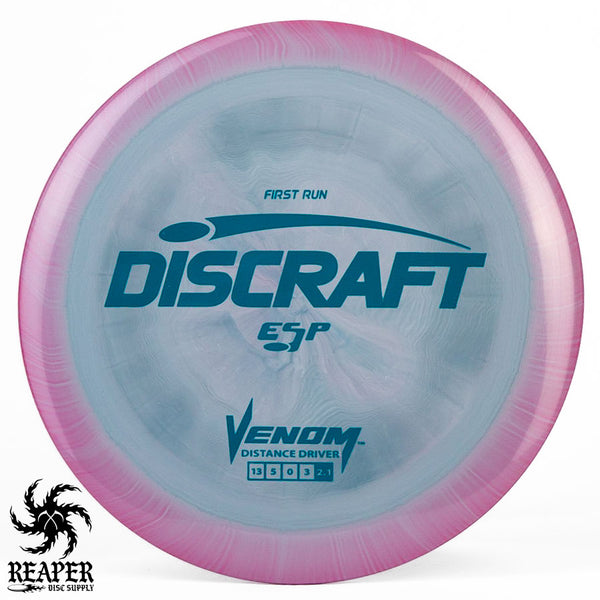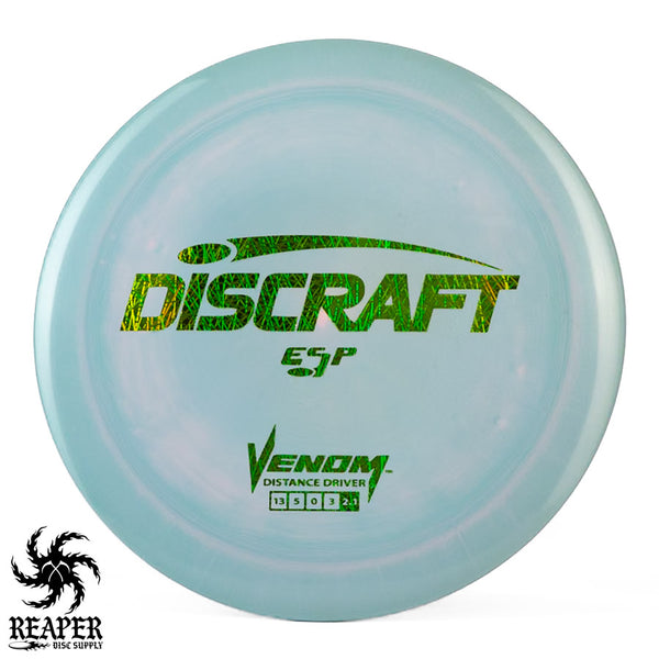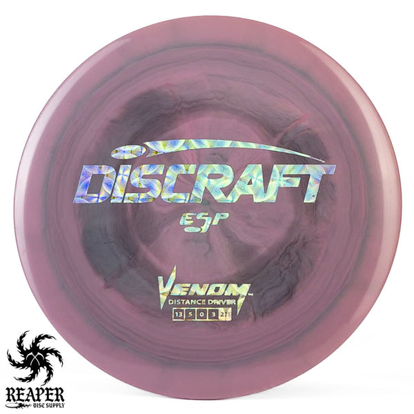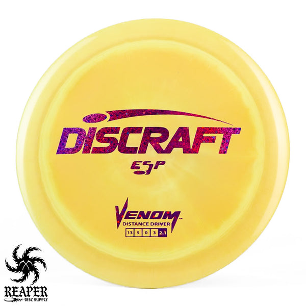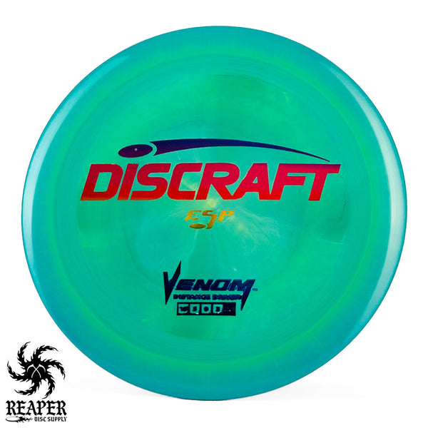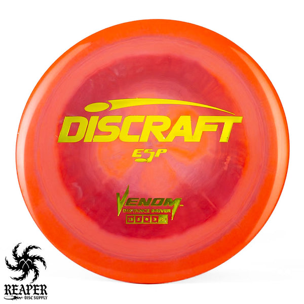 The new and improved Discraft Venom in ESP plastic is the overstable distance driver that you have been missing from your game. Made with Discraft's premium grade plastic, these ESP Venoms offer durability, lots of grip, and swirly awesomeness. If you are a max distance shredder then you're going to love this disc during windy rounds. It has enough stability to not turn over no matter how hard you throw it, and it cuts through the wind like a hot knife through butter. Live life on the dangerous side and give this Discraft Venom (ESP) the chance it deserves!