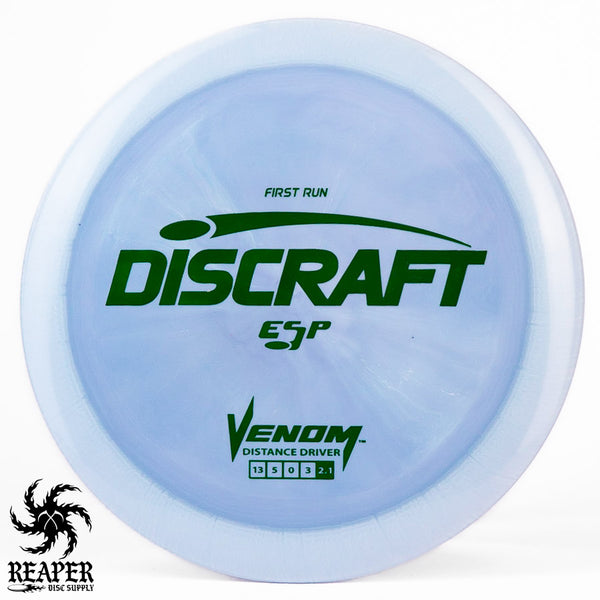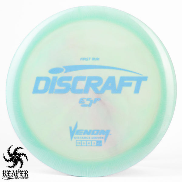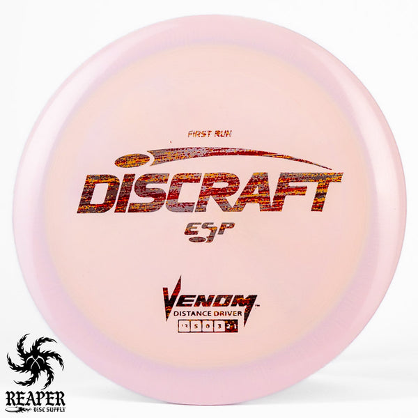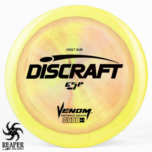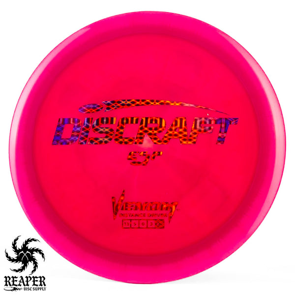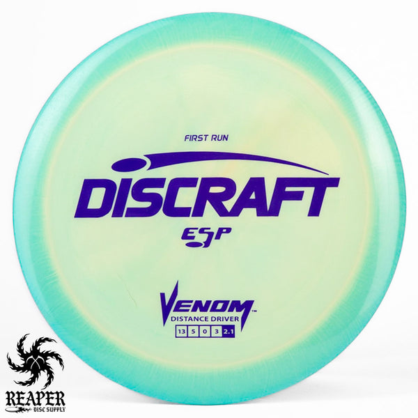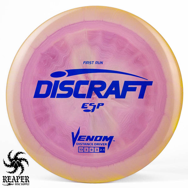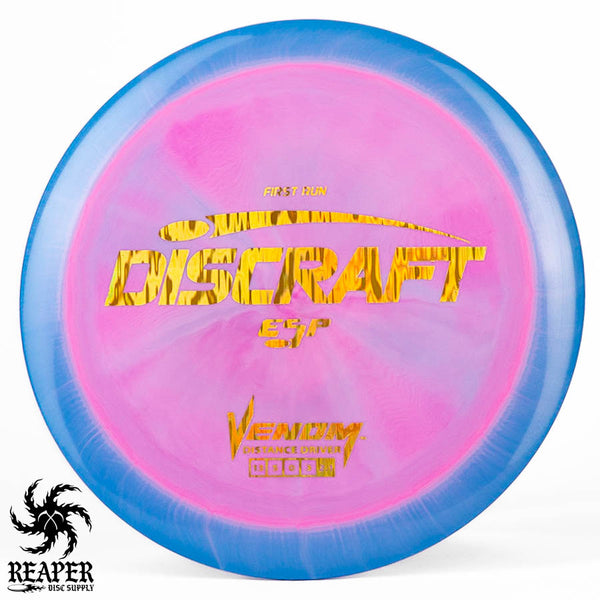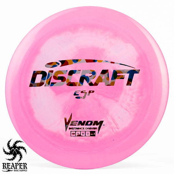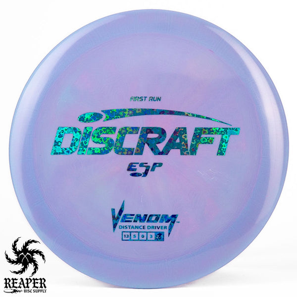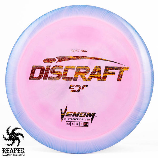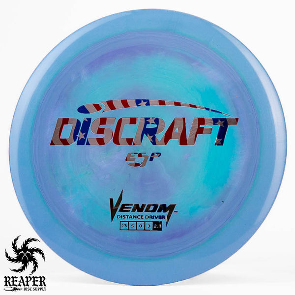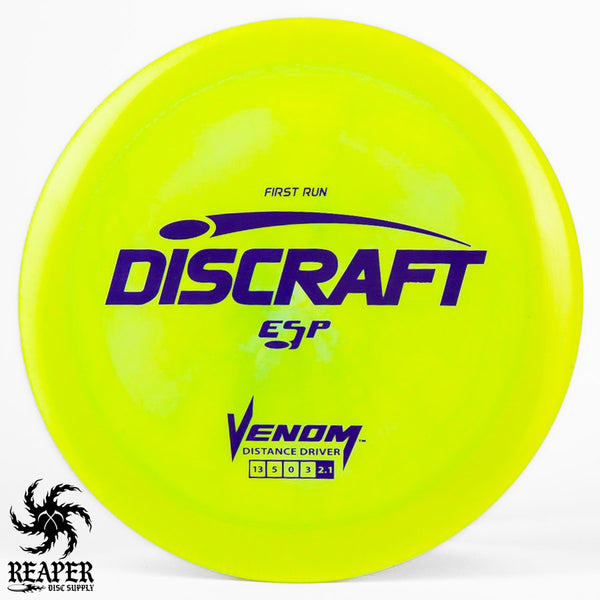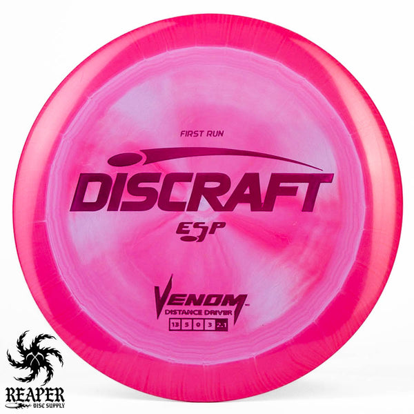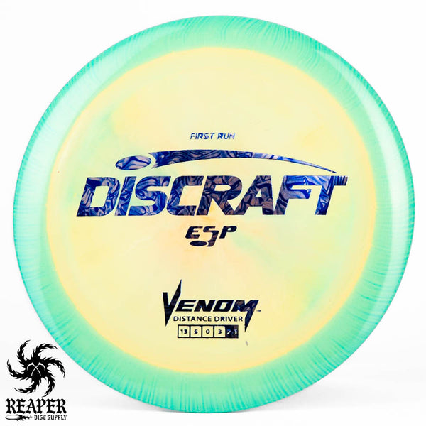 The new and improved Discraft Venom in ESP plastic is the overstable distance driver that you have been missing from your game. Made with Discraft's premium grade plastic, these ESP Venoms offer durability, lots of grip, and swirly awesomeness. If you are a max distance shredder then you're going to love this disc during windy rounds. It has enough stability to not turn over no matter how hard you throw it, and it cuts through the wind like a hot knife through butter. Live life on the dangerous side and give this Discraft Venom (ESP) the chance it deserves!