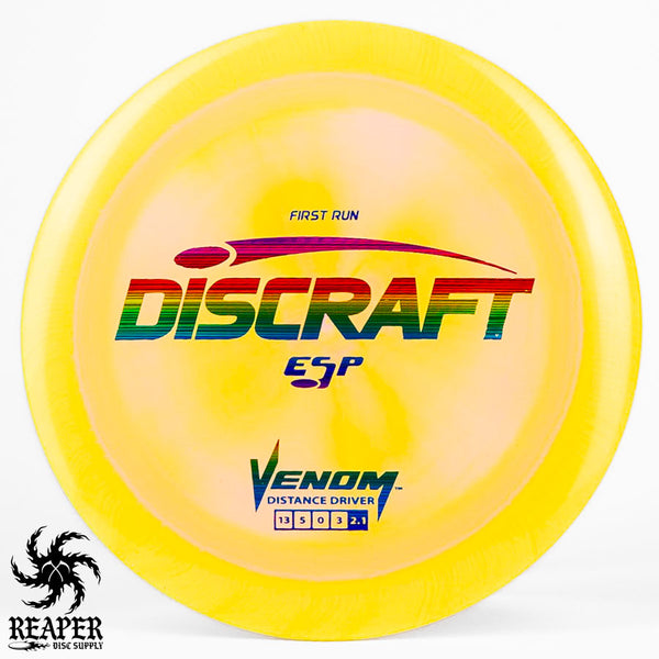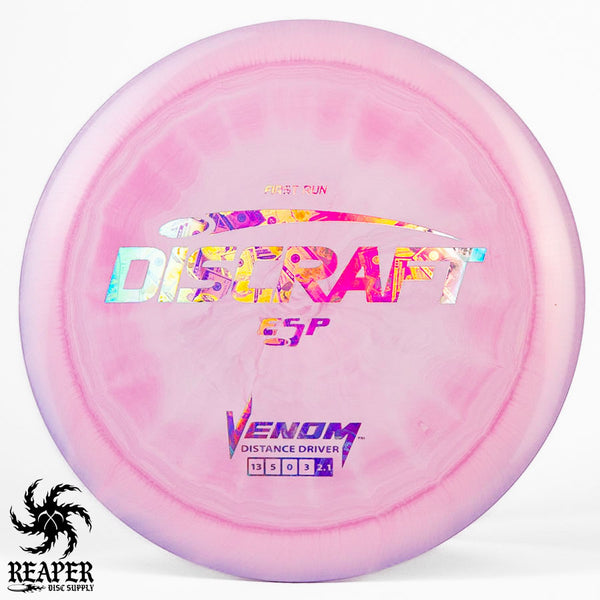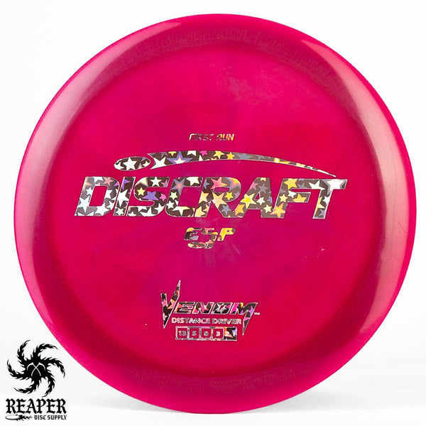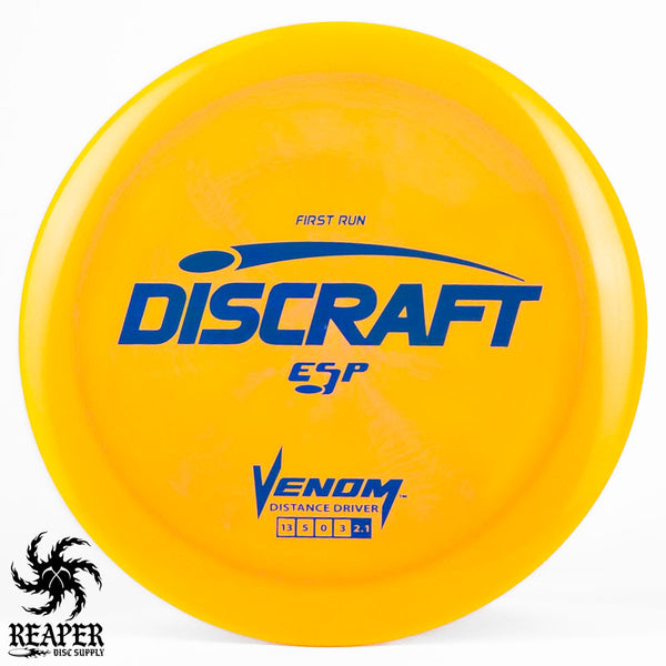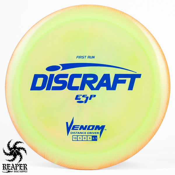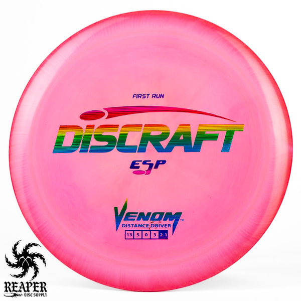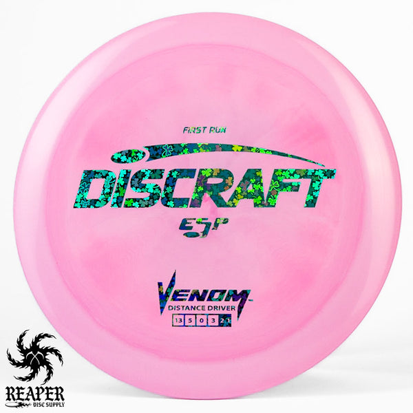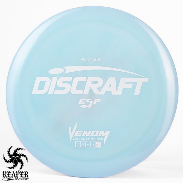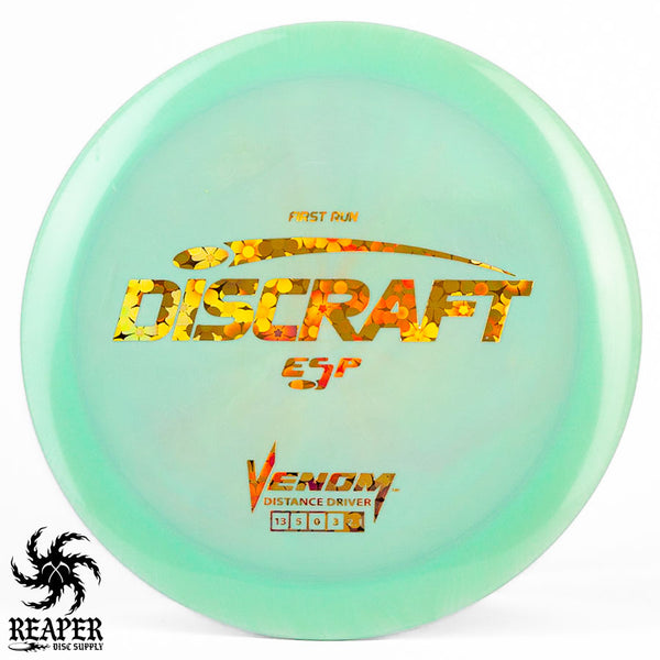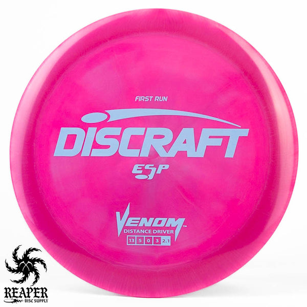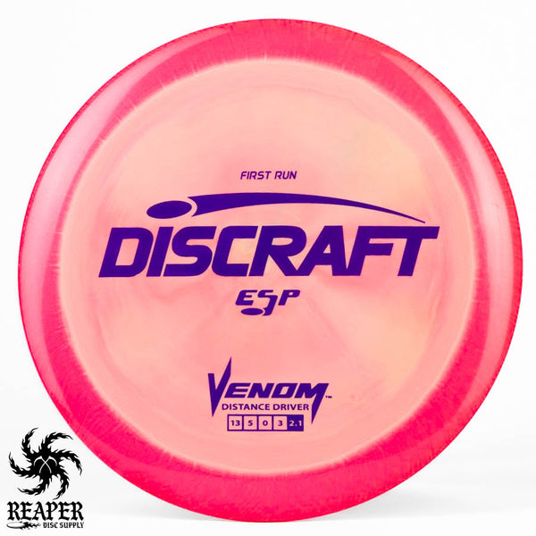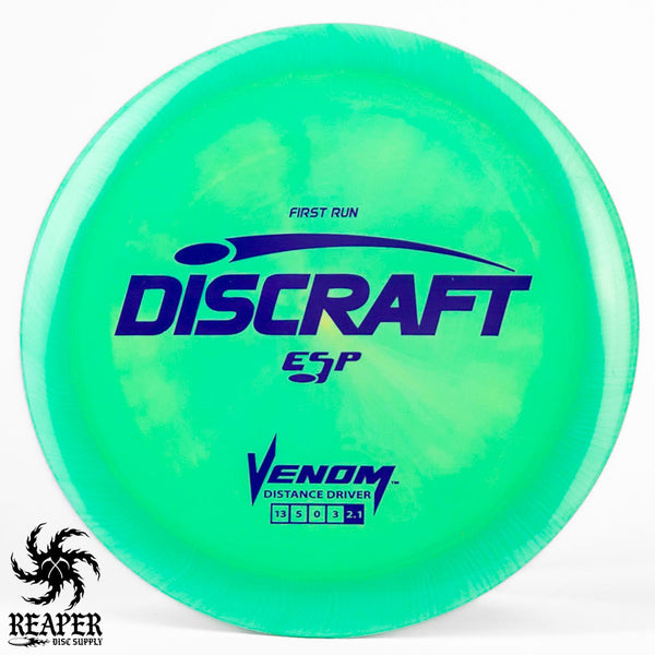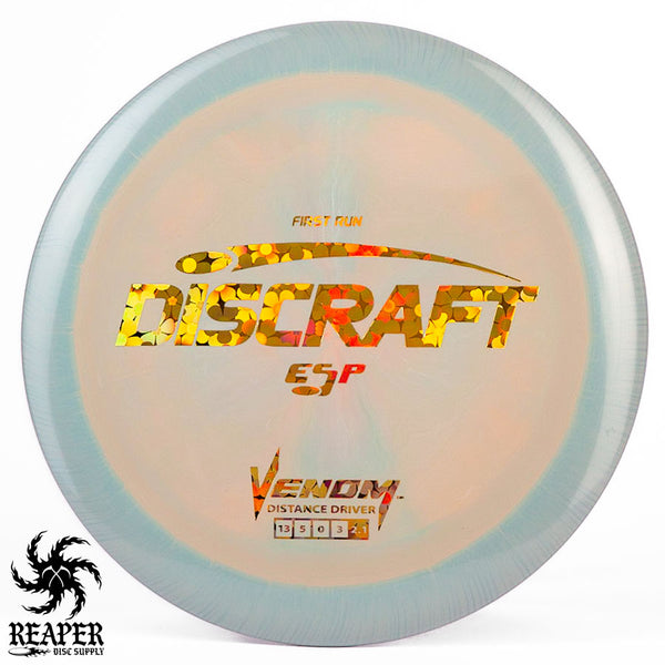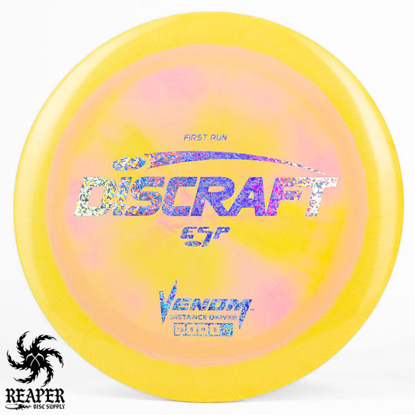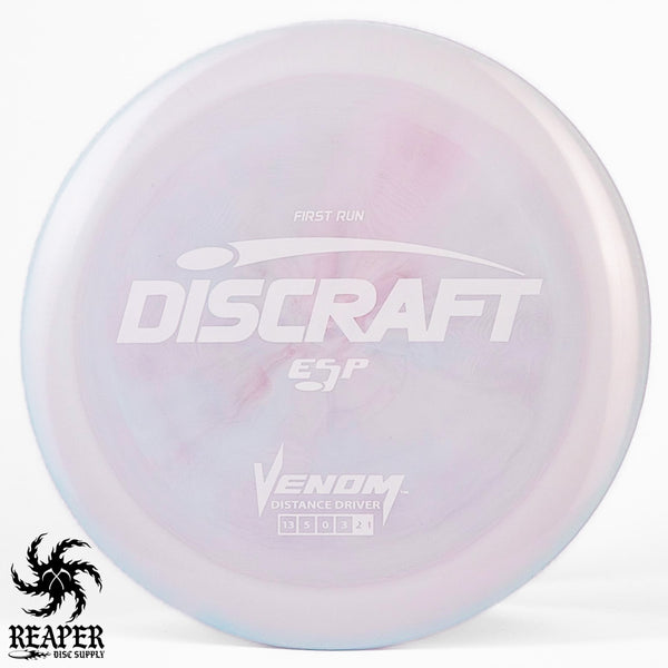 The new and improved Discraft Venom in ESP plastic is the overstable distance driver that you have been missing from your game. Made with Discraft's premium grade plastic, these ESP Venoms offer durability, lots of grip, and swirly awesomeness. If you are a max distance shredder then you're going to love this disc during windy rounds. It has enough stability to not turn over no matter how hard you throw it, and it cuts through the wind like a hot knife through butter. Live life on the dangerous side and give this Discraft Venom (ESP) the chance it deserves!