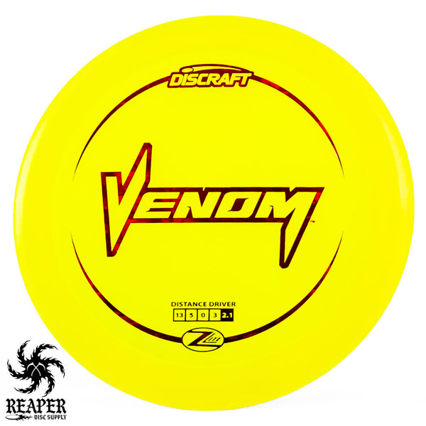 Experience the bite of the Discraft Z Lite Venom. This overstable distance driver is ideal for advanced players and windy conditions, ensuring maximum torque and a reliable finish. Built from durable and lightweight Z Lite plastic for unmatched performance and distance. A must-have for the aggressive disc golfer.