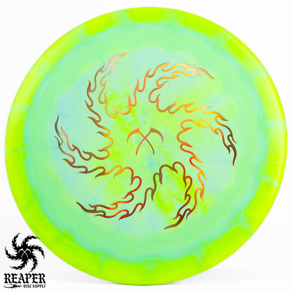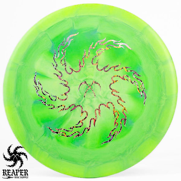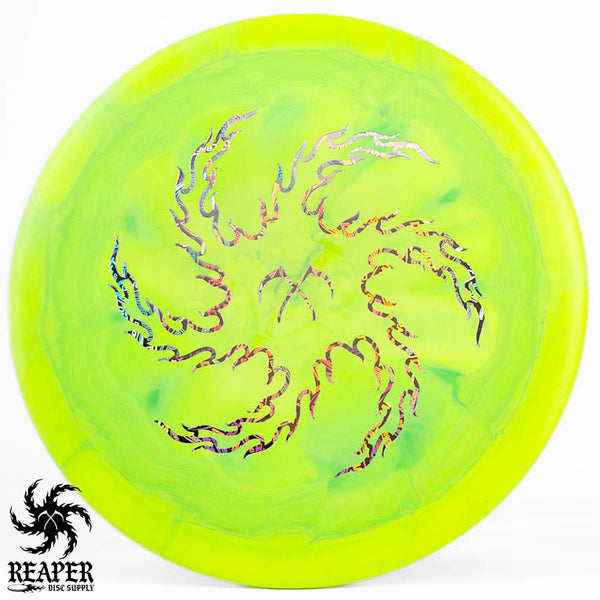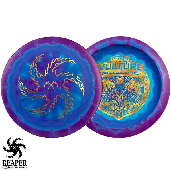 Experience precision with the Discraft Holyn Handley ESP Vulture - Reaper Edition. This unique disc boasts a double stamp of a Holyn Handley Tour Series and our signature 'flaming vortex' Reaper Edition that turns heads. Crafted from durable ESP plastic, the Vulture provides consistent flights and is ideal for varied wind conditions. This disc exhibits a combination of control and stability, and is perfect for intermediate to advanced level players. Upgrade your game with the Vulture!
