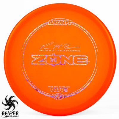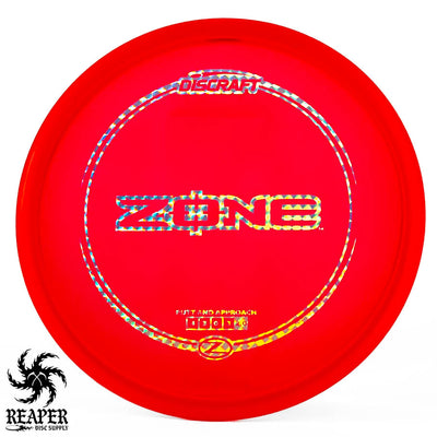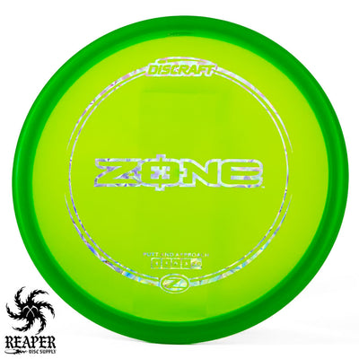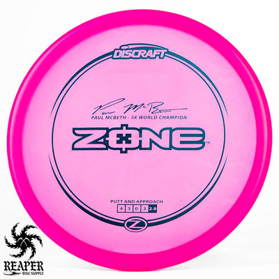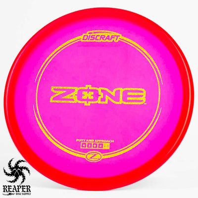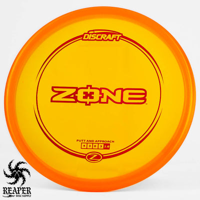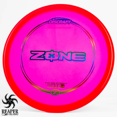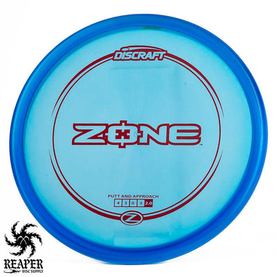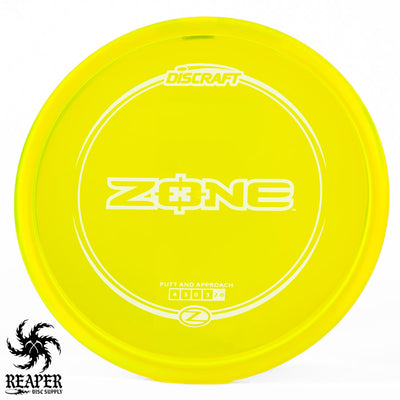 The Discraft Z Zone is tried and true putt & approach disc that is perfect for upshots and made with destruction-proof plastic. The Z Zone is an overstable approach disc that you will find in almost every Discraft-sponsored players bag. It is extremely reliable for any weather conditions and very comfortable to throw for backhand or forehand shots. If you need a short driving disc that you can rip as hard as you want or a touchy upshot disc that won't blow away in the wind - the Discraft Z-Line Zone is your new go-to!