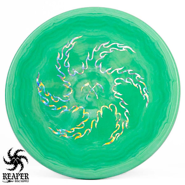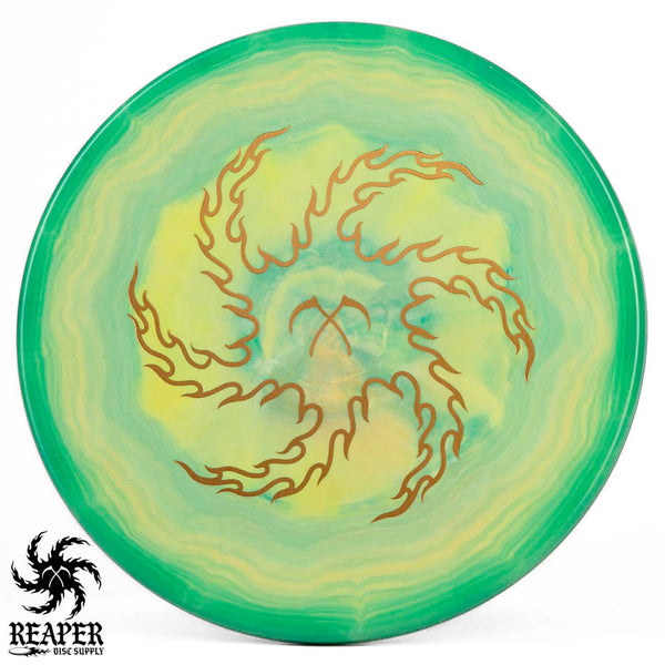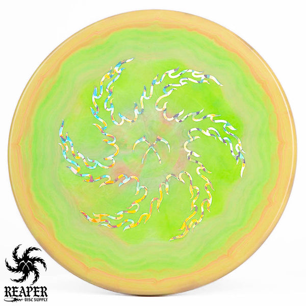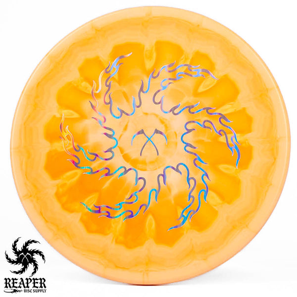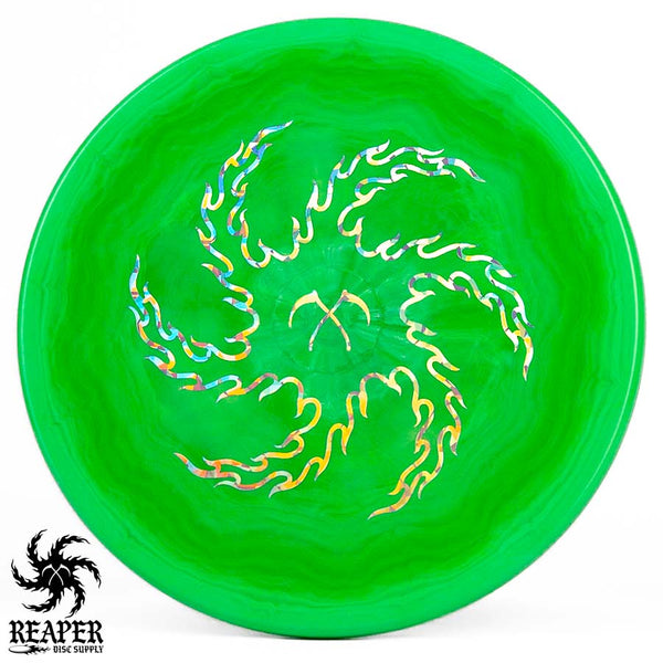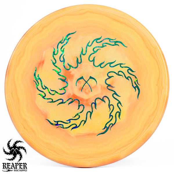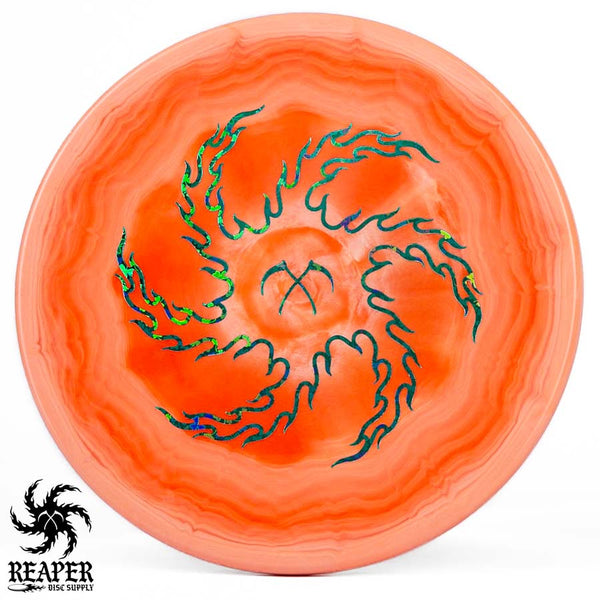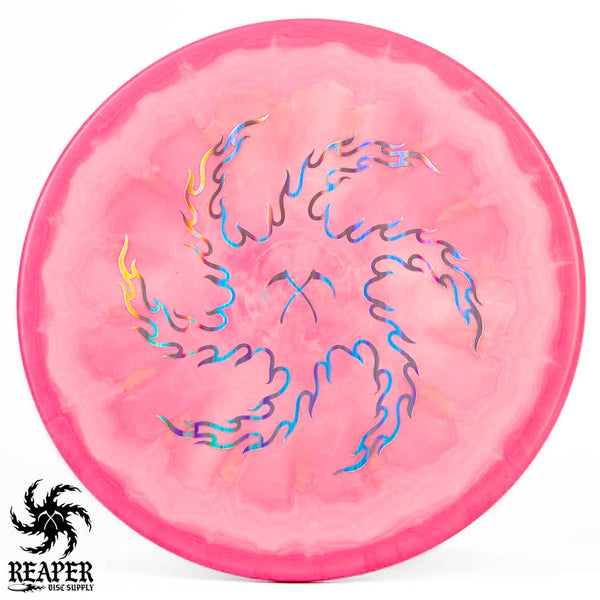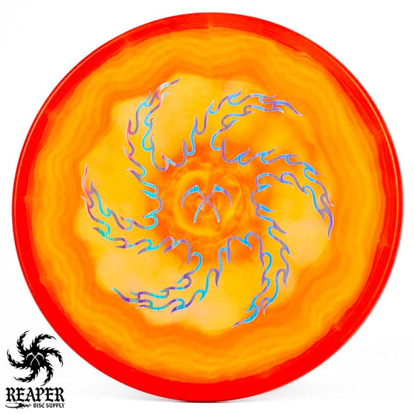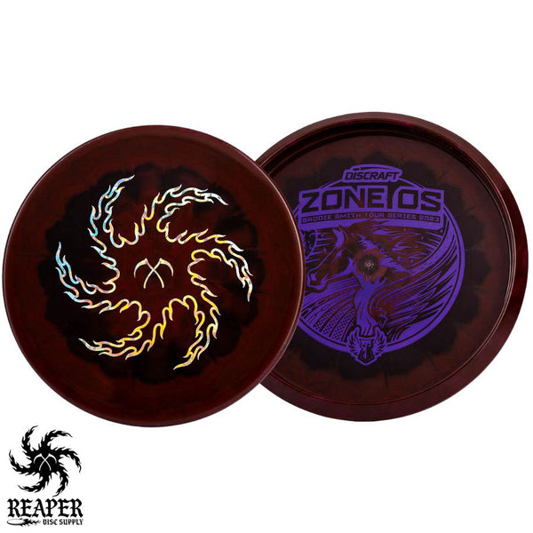 Turn up the beef with our Discraft Brodie Smith ESP Zone OS - Reaper Edition! This overstable beast boasts a double-sided stamp, featuring Brodie Smith's Tour Series on the bottom and our Reaper Edition 'flaming vortex' stamp on top.