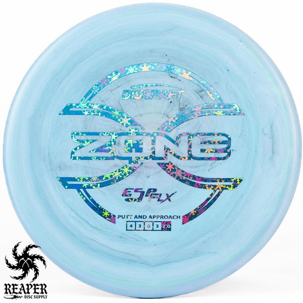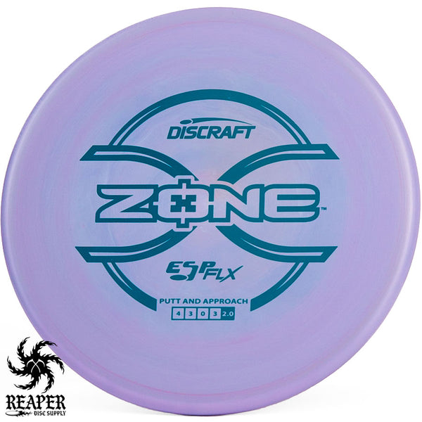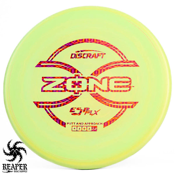 The Discraft ESP FLX Zone combines one of the most popular approach discs with a flexible version of Discraft's most popular plastic blend. Looking for a little more flex in your approach discs to help it sit down faster? This is the overstable putt and approach disc for you. The ESP FLX Zone is a dependable upshot disc that you can depend on holding up to damage as well as wind. With a variety of cool stamps and colors, what's not to love about the Discraft ESP FLX Zone?