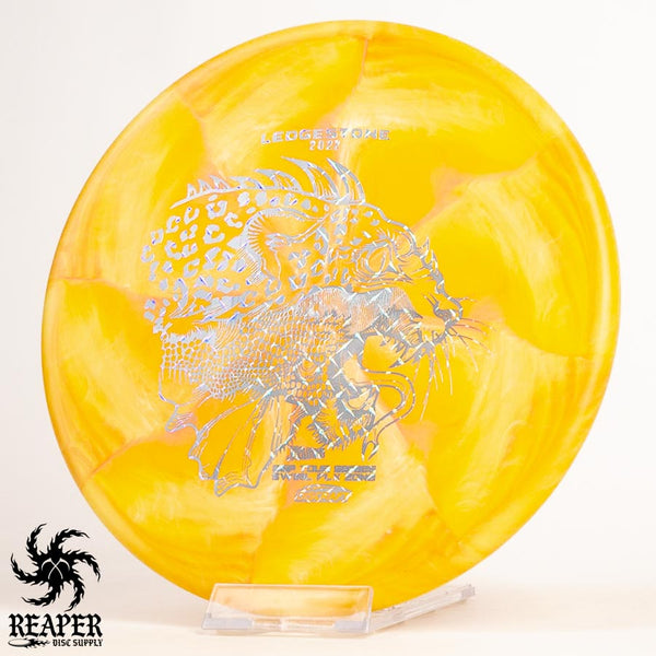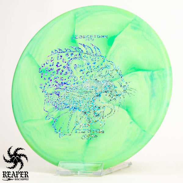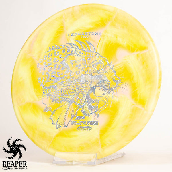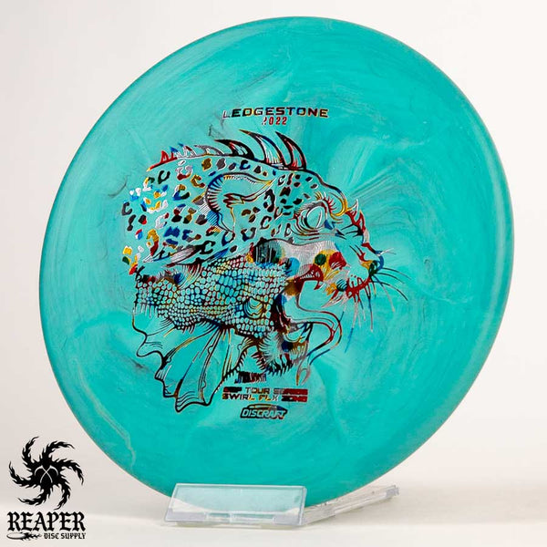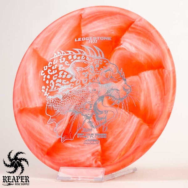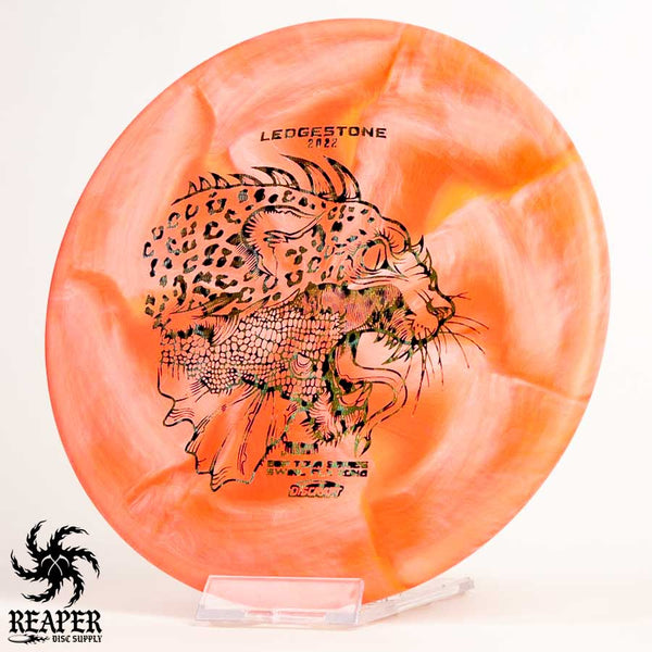 The 2022 Discraft Ledgestone ESP Tour Series Swirl FLX Zone features a menacing stamp, unique foil colors, and premium ESP FLX plastic.