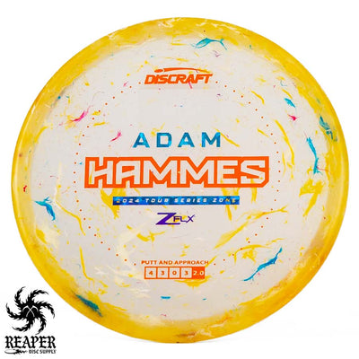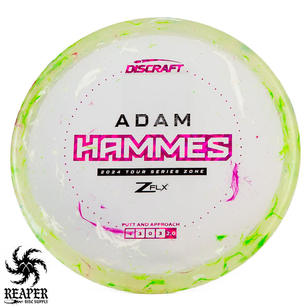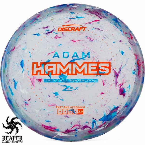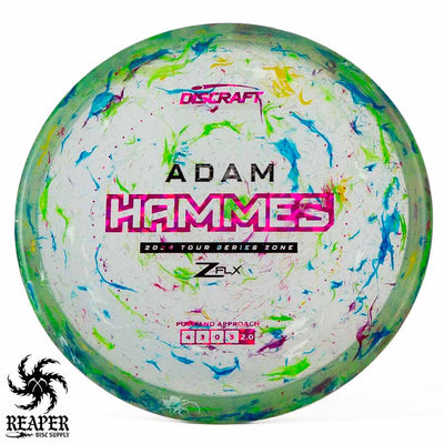 This 2024 Tour Series disc features Adam Hammes' signature, with a portion of each sale directly supporting his journey on the Disc Golf Pro Tour. Ideal for forehand approaches and reliable in windy conditions, the Z FLX Zone provides exceptional grip, durability, and a distinctive look. Perfect for players seeking precision and control, this disc is a must-have for both fans and serious competitors.