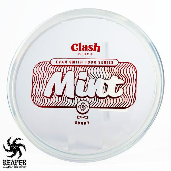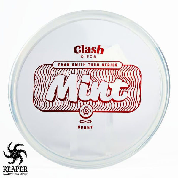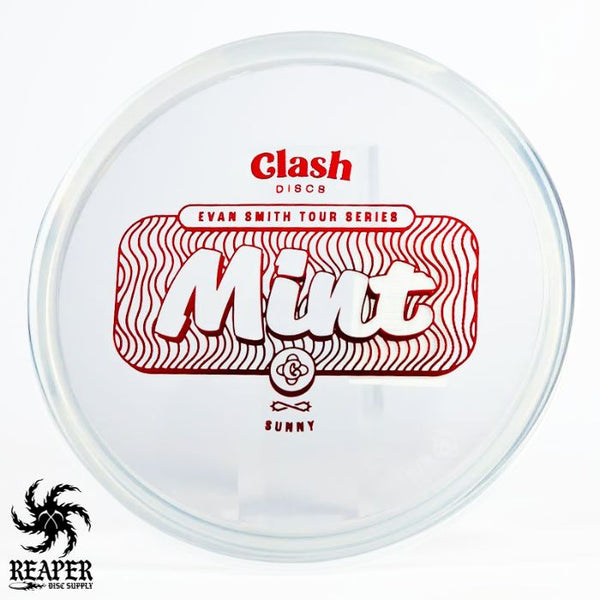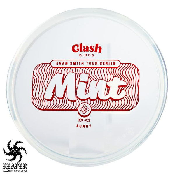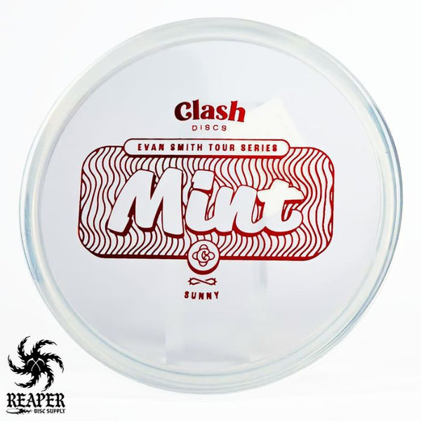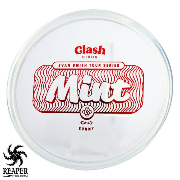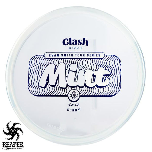 Master your approach game with the Clash Discs Sunny Mint Evan Smith Signature disc. This collaboration with pro disc golfer Evan Smith brings you a top-tier disc made with Sunny plastic, known for its exceptional grip and durability.