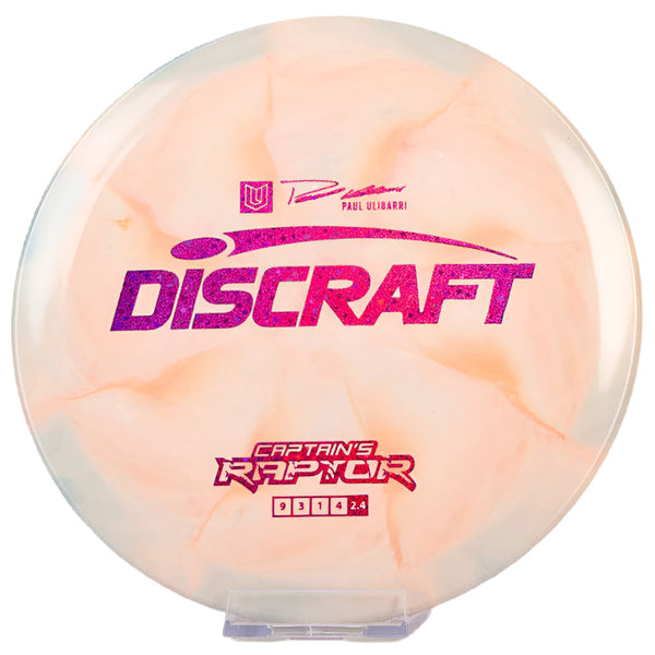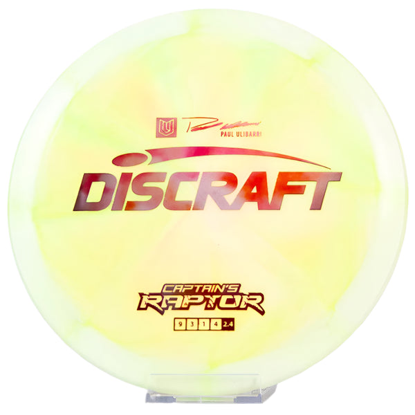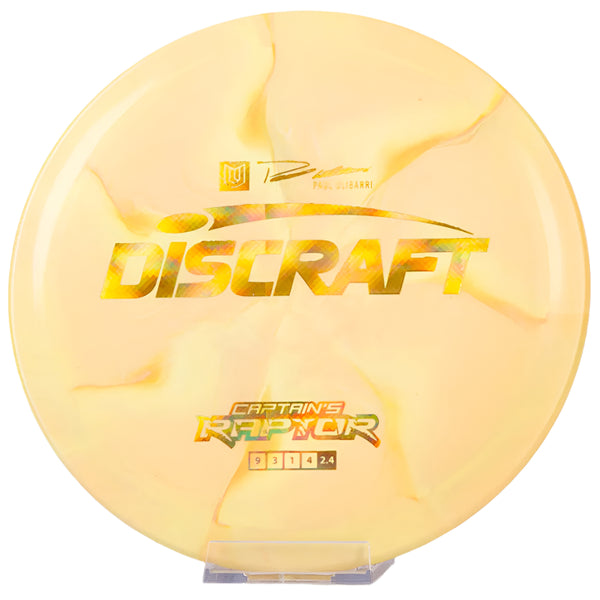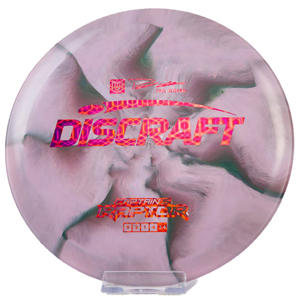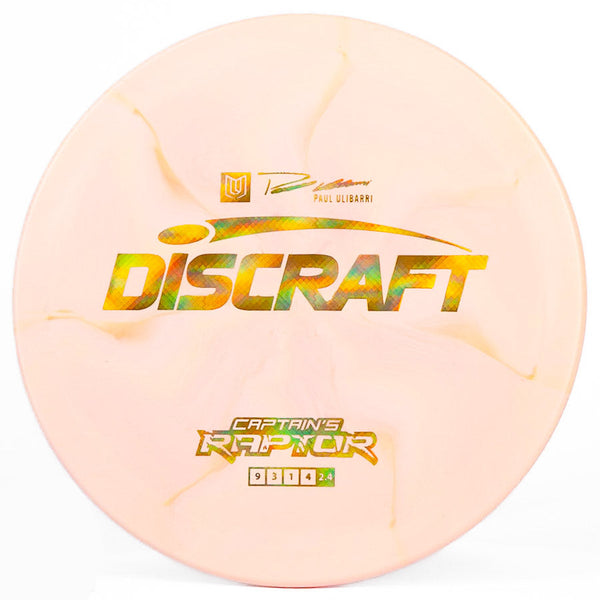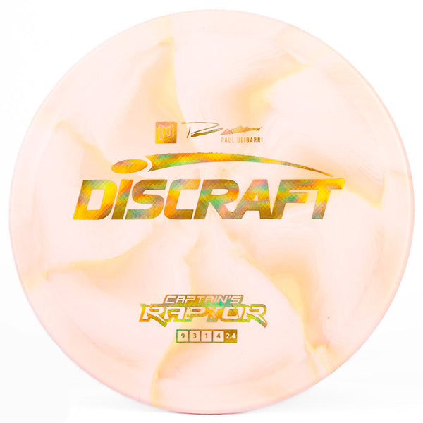 The Discraft Captain's Raptor is Paul Ulibarri's signature driver, is made with premium swirly ESP plastic, and is extremely overstable.